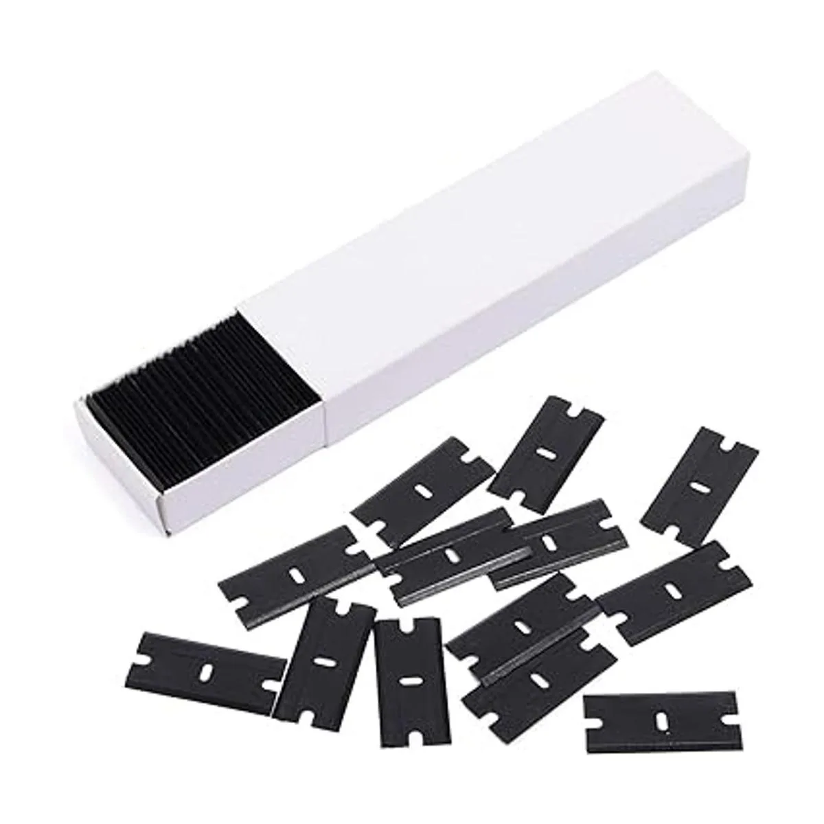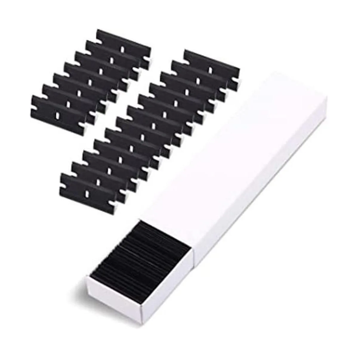 EHDIS 100 cuchillas de plástico de doble borde para raspador de vidrio de seguridad y raspador de plástico para quitar calcomanías, pegamento adhesivo y limpieza de vidrio, color negro