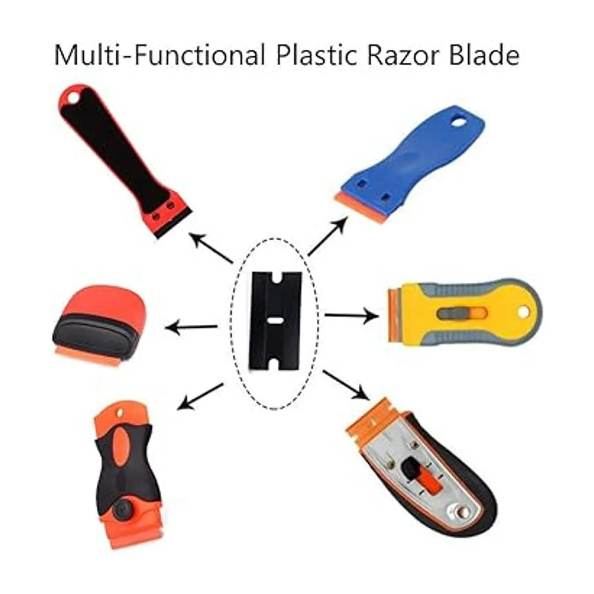 Múltiples cuchillas de aplicación: las cuchillas de afeitar de plástico son adecuadas para limpiar pegamento residual, etiquetas, calcomanías, pintura, calcomanías, calafateo y vidrio en coches, vidrio, azulejos de cerámica, azulejos de suelo, restos de alimentos en la estufa, etc.