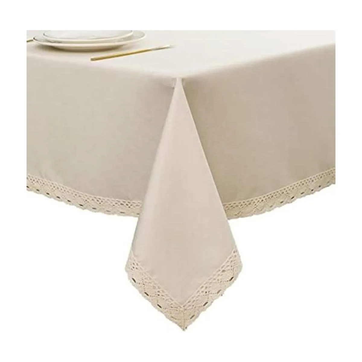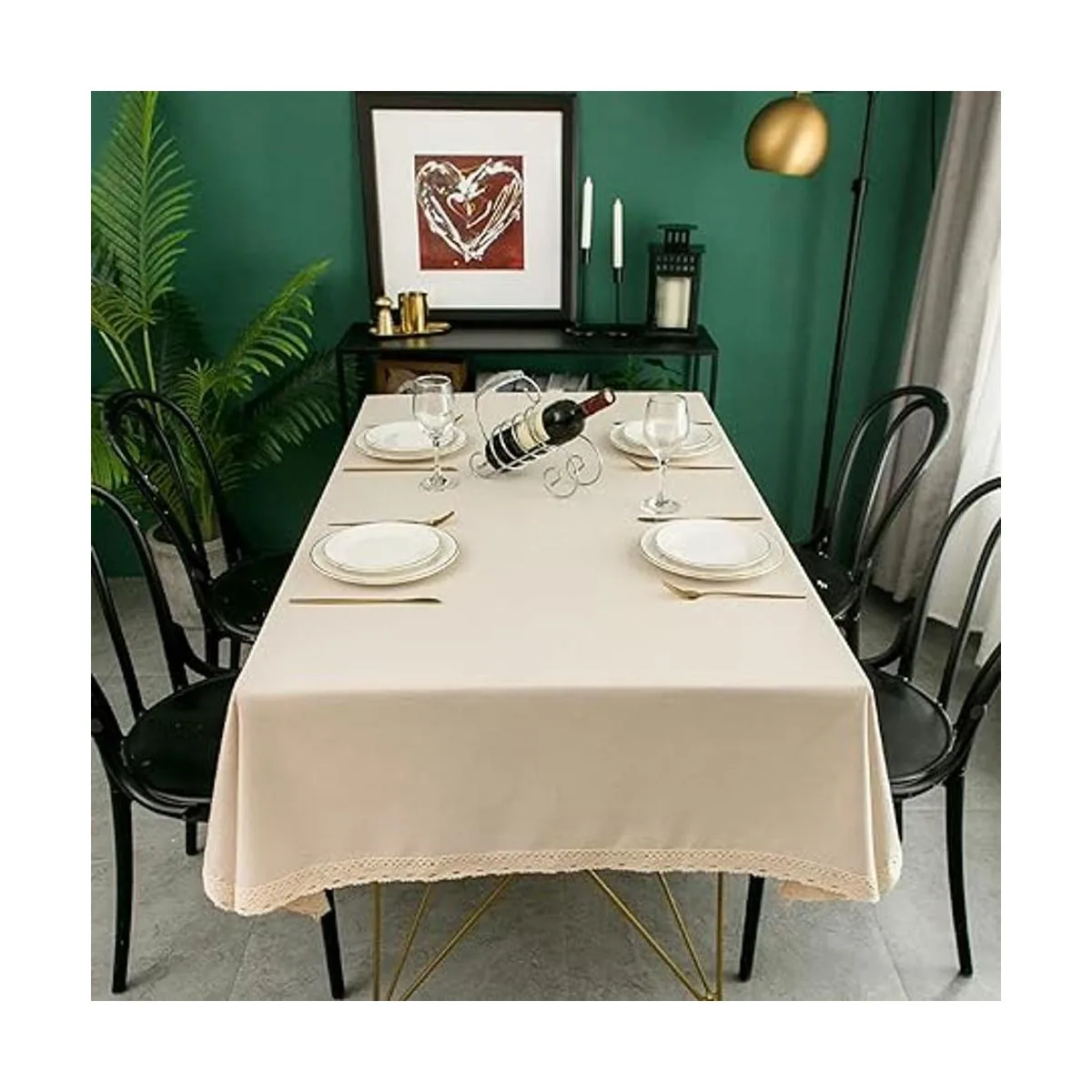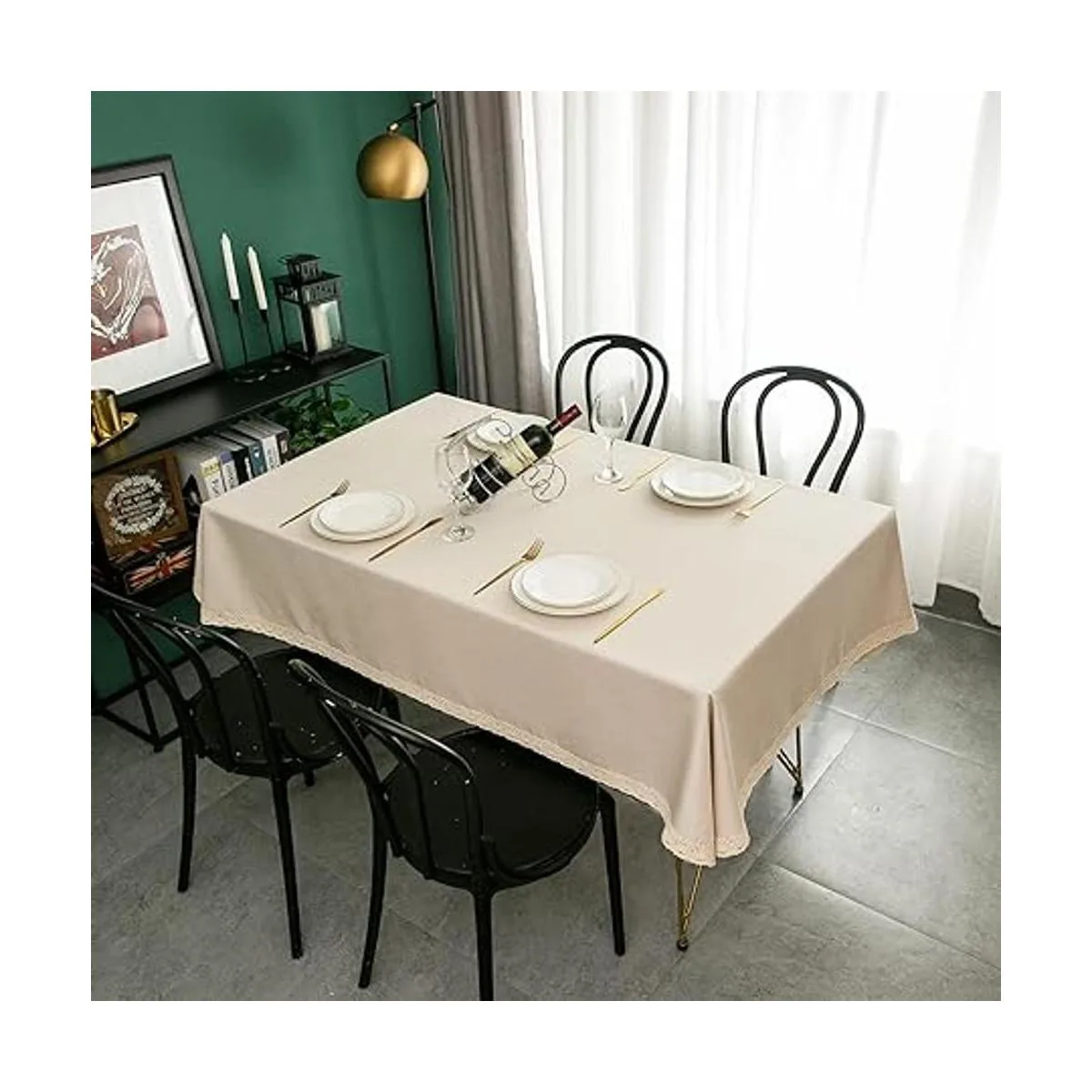 EHouseHome Mantel de lino sintético con ribete de encaje, impermeable, a prueba de derrames, resistente a las manchas, sin arrugas, a prueba de aceite, para banquetes, fiestas, cenas, cocina, boda, vacaciones, naturaleza, rectangular, 60 x 84 pulgadas