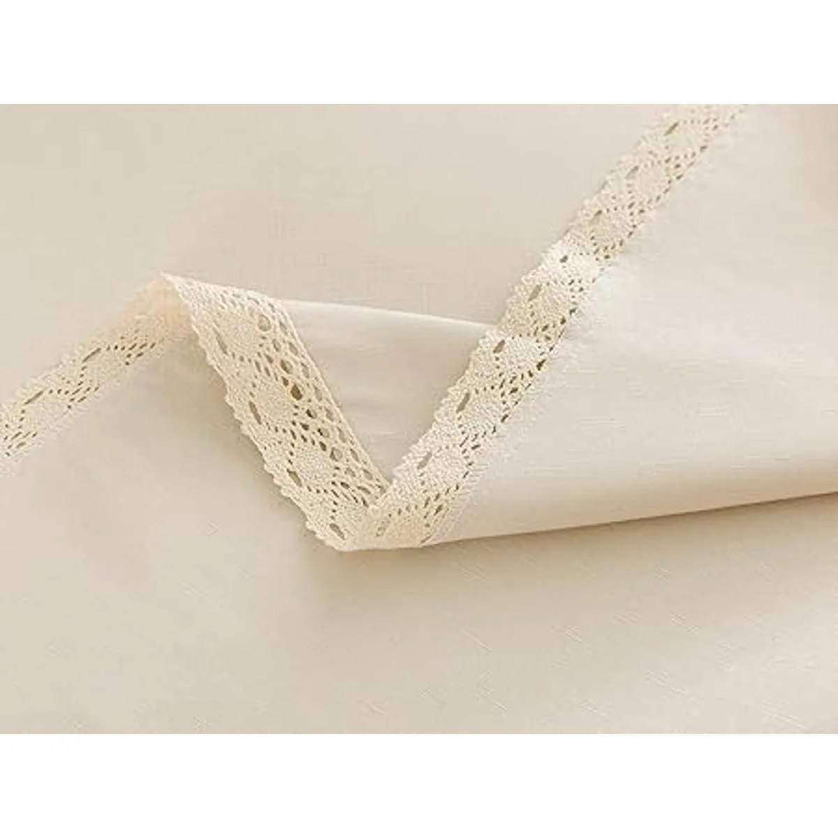 Tela de lino sintético con hermoso borde de encaje de macramé de ganchillo cremoso que hace que este mantel sea vintage y elegante. Este mantel hará que tu comida sea más lujosa. Adecuado para exteriores, patio, jardines, cocina, comedor, habitación familiar y decoración