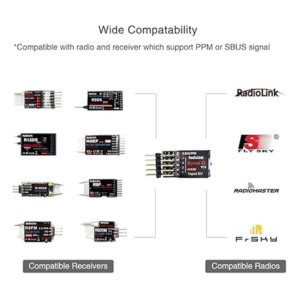 Señal SBUS/PPM: 3 canales BymeD soporta todos los receptores de salida de señal SBUS/PPM.