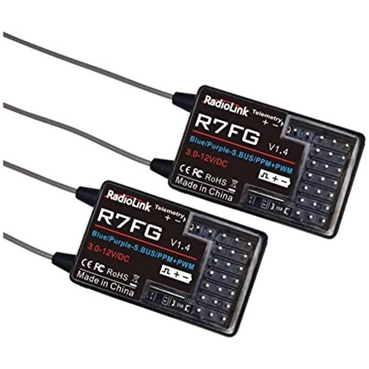 Rango de voltaje: 3 12 V CC. Soporta salida de señal SBUS/PPM/PWM. El paquete incluye 2 receptores R7FG y 2 cables de telemetría XT60.