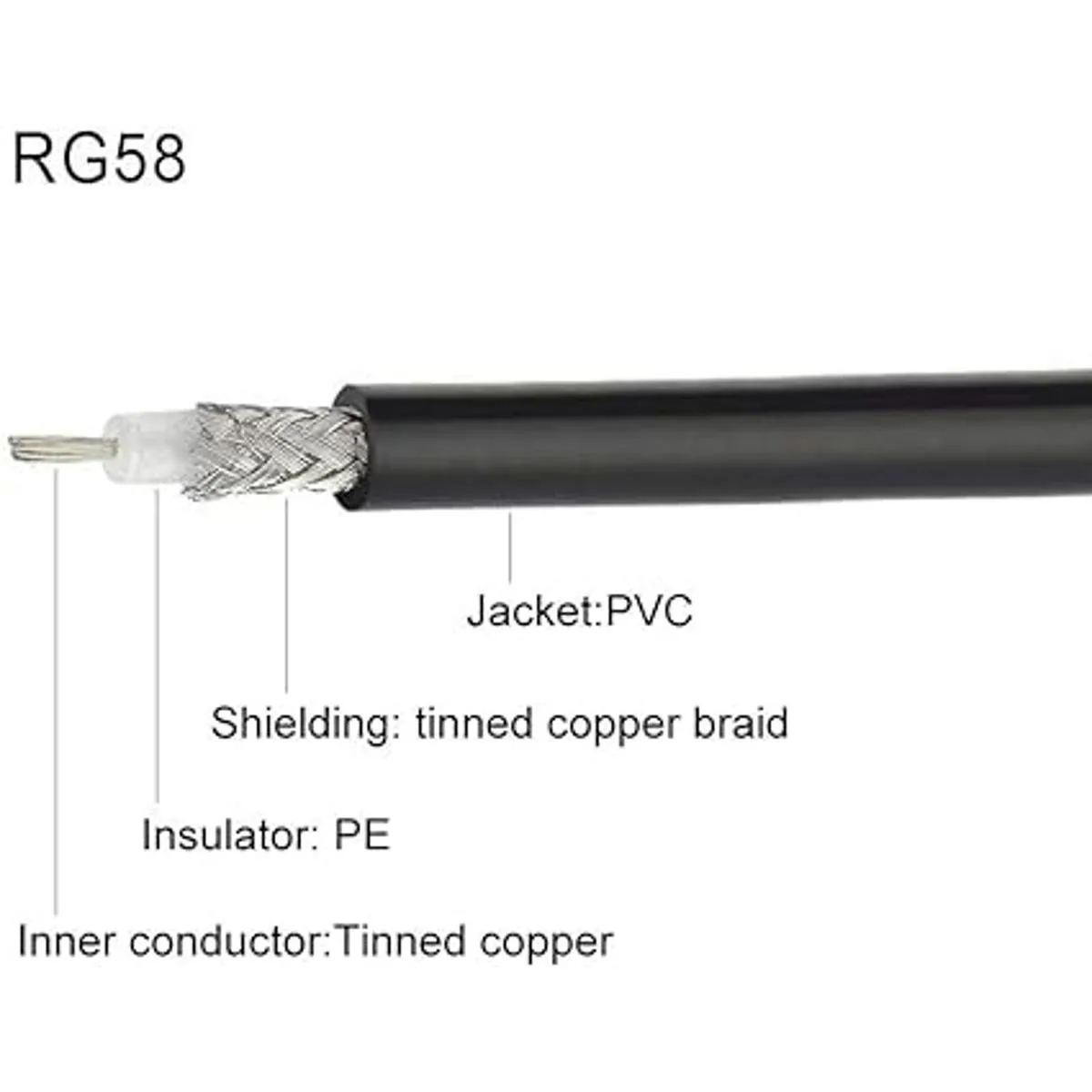 Tipo de cable: RG58 Longitud del cable: 39.4 in/3 pies