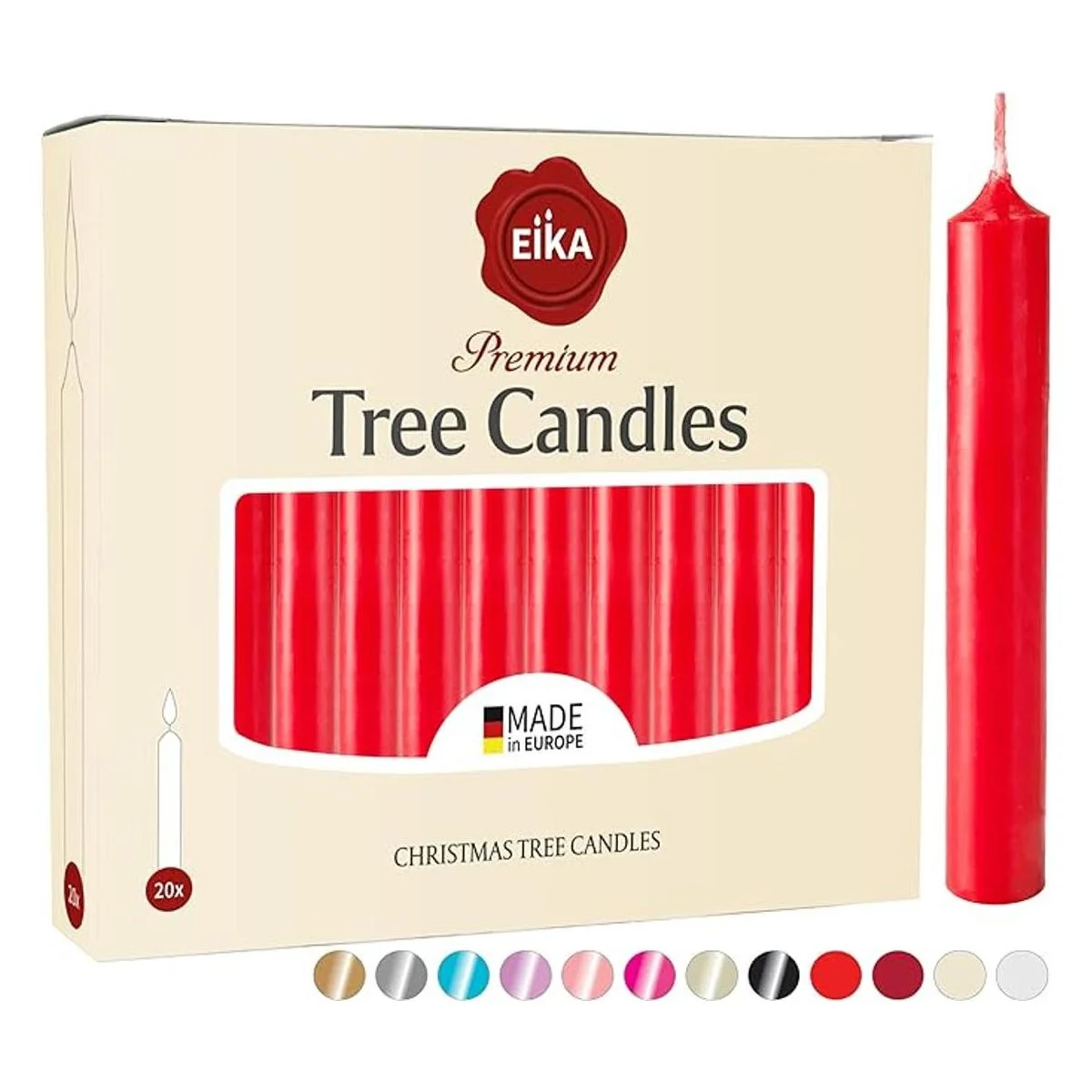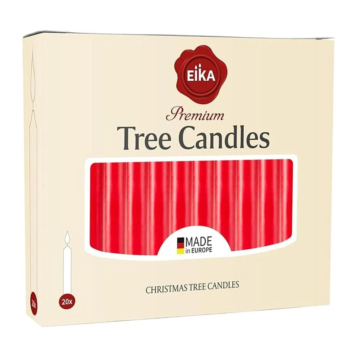 Eika Juego de 20 velas de cera de Navidad tradicionales para pirámides, carruseles y campanillas Hecho en Europa Color sólido Rojo