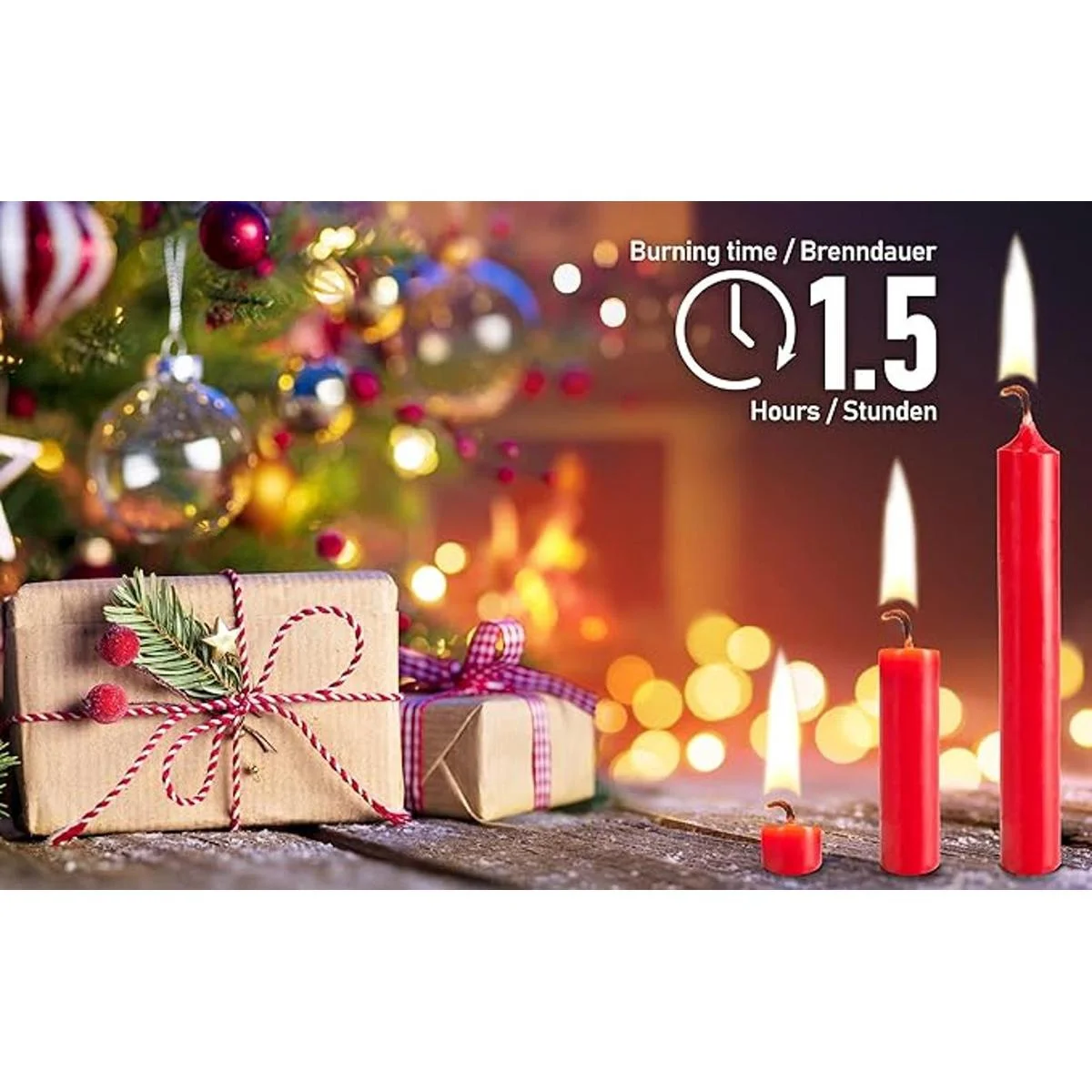 Versátil: perfecto para decoraciones de Navidad y para el árbol de Navidad, incluso en fiestas de cumpleaños y pasteles o como iluminación de fiestas, estas velas pueden encontrar su uso. También durante una noche romántica, estas velas proporcionan un ambiente de humor