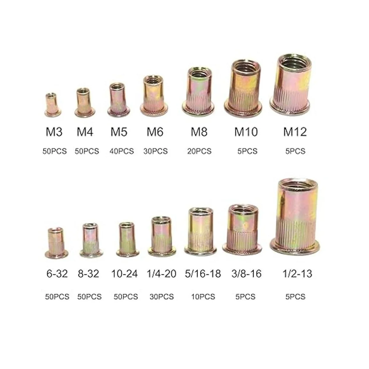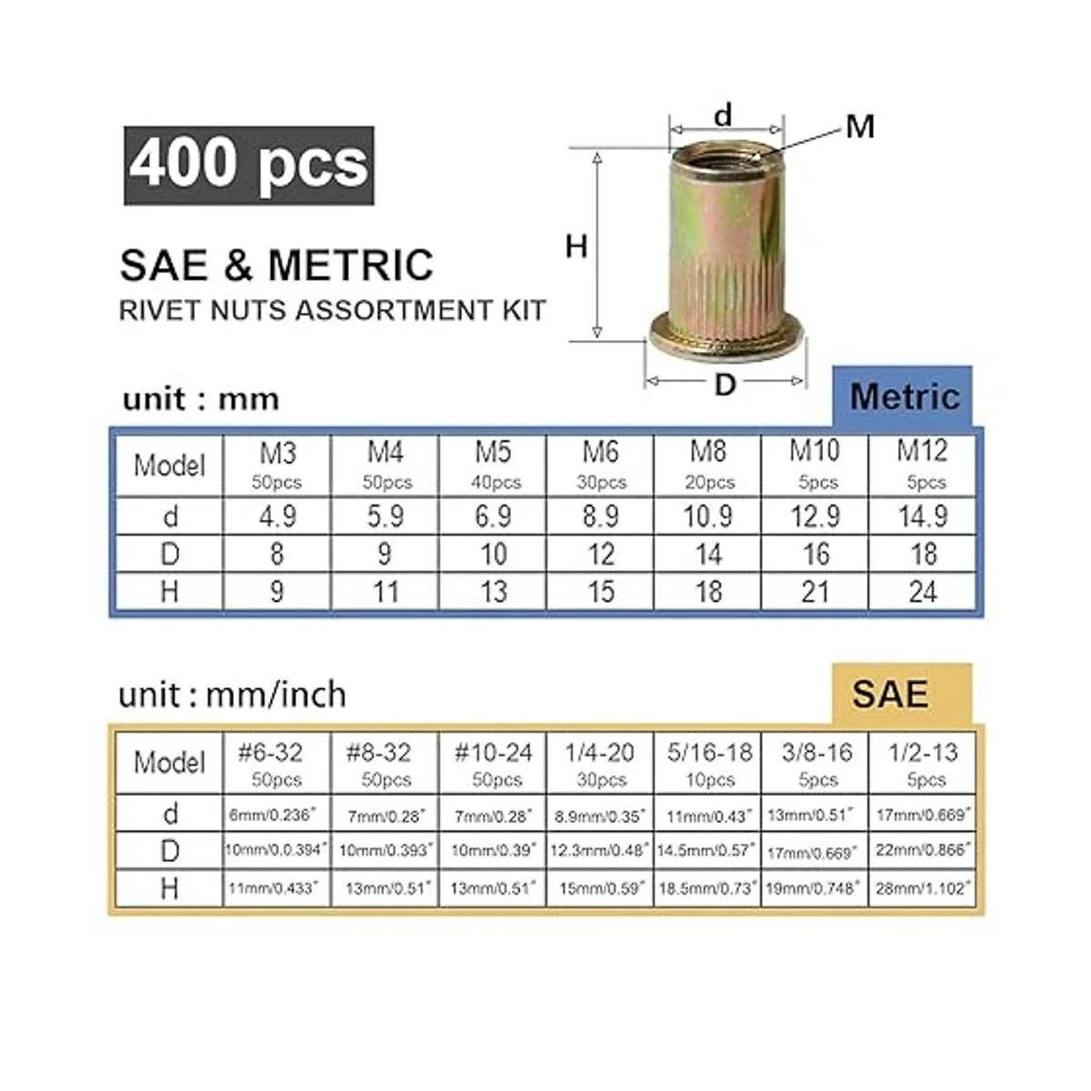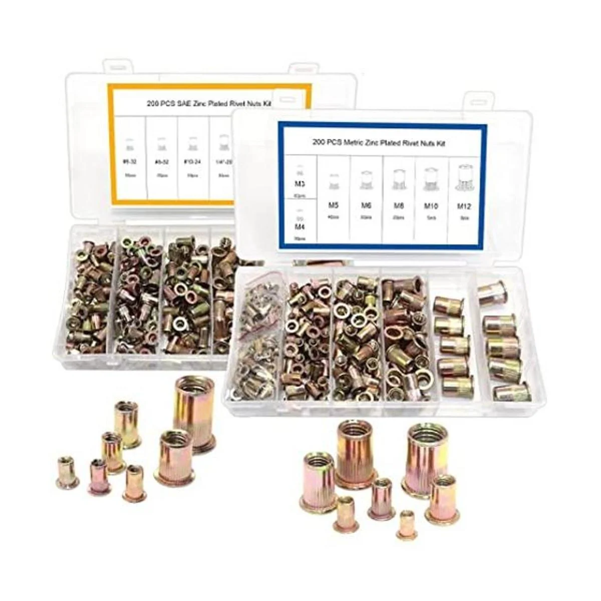 El paquete incluye: este juego de herramientas de tuercas de remache contiene 200 tuercas SAE y 200 tuercas métricas con cajas separadas, tamaños comunes, 632, 832, 10 24, 1/4 20, 5/1618, 3/816, 1/213, M3, M4, M5, M6, M8, M8, M8, 10 y M y M y 12
