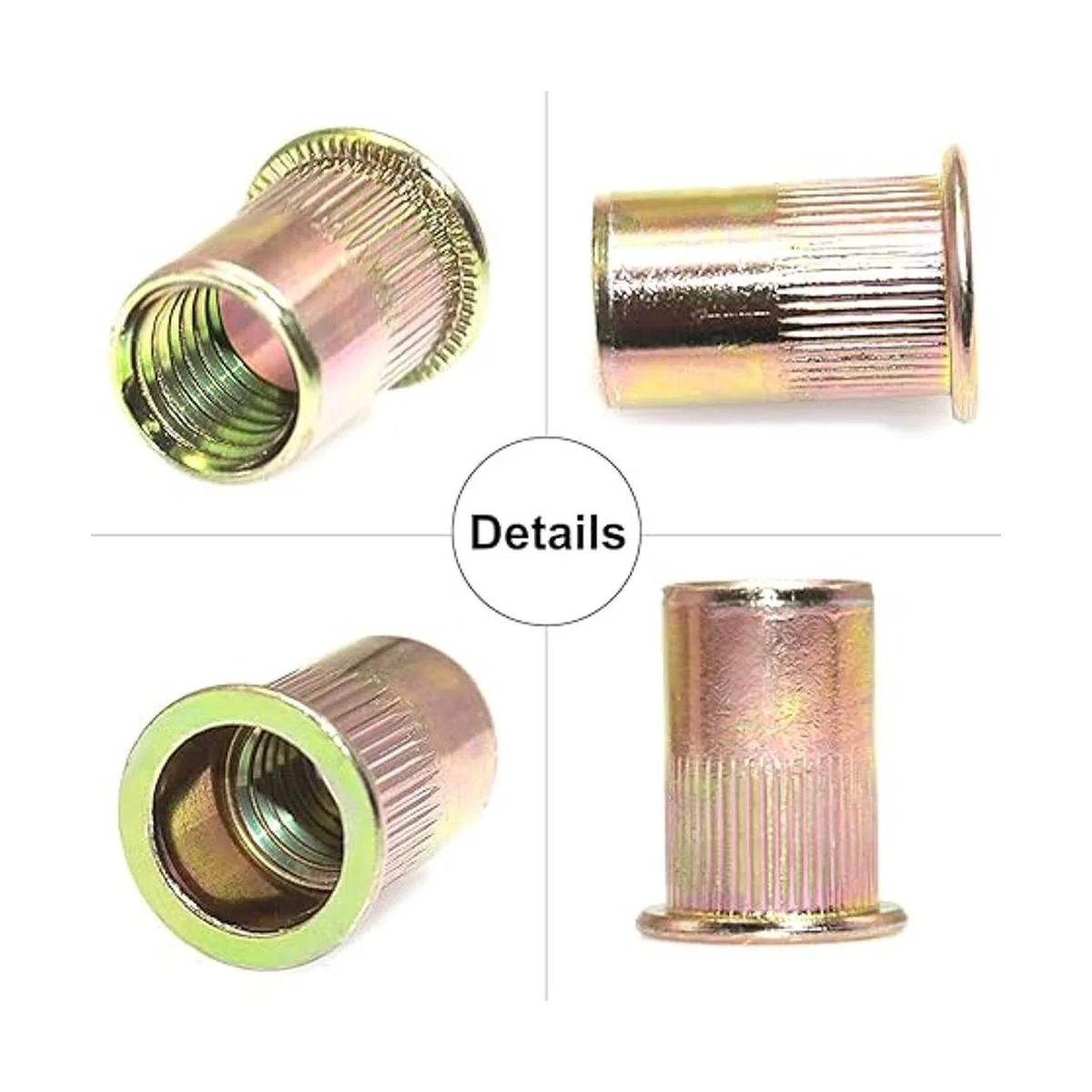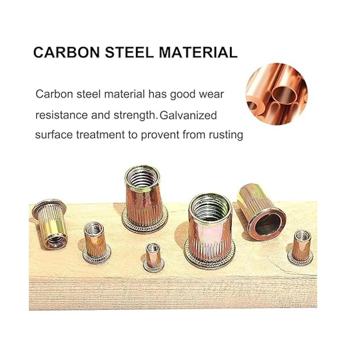 Material duradero: las tuercas de remache están hechas de acero al carbono con galvanización superficial, resistente a la corrosión, resistente a los ácidos, fuerte y duradero.