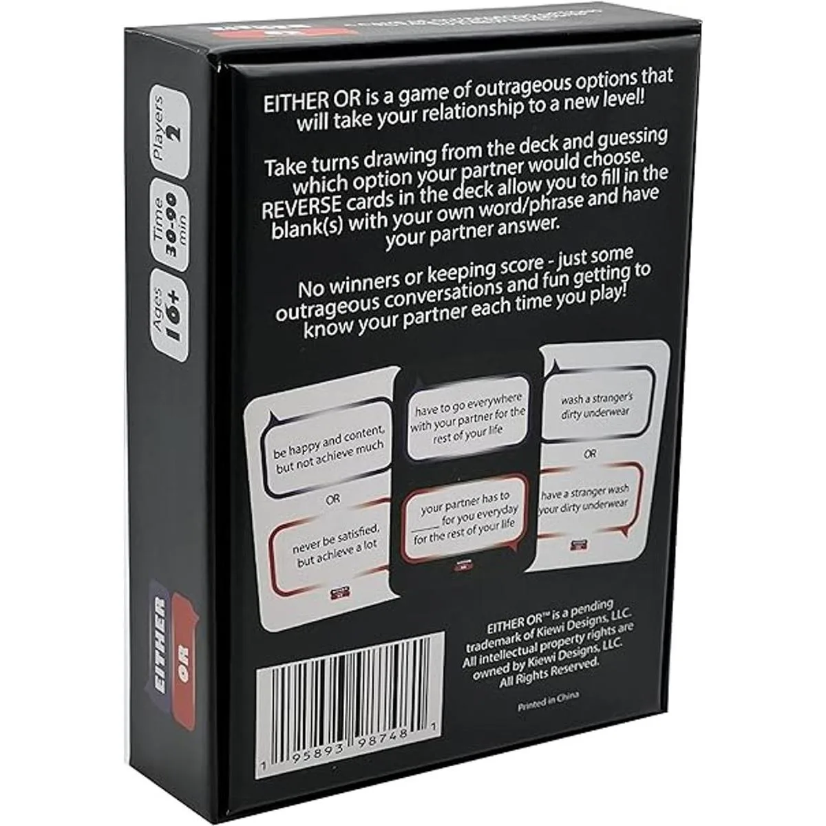Either Or Es un regalo perfecto para cualquier ocasión. Compra para tu propio disfrute como una noche de desafío, o como un maravilloso regalo para múltiples ocasiones: recién casados o parejas comprometidas, aniversarios, despedidas de soltera, día de San Valentín, etc.
