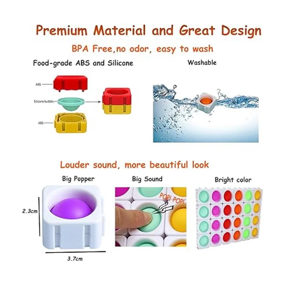 Alivio del estrés Presiona las burbujas hacia abajo para hacer un gran sonido pop. Los sonidos Pop, Pop, Pop pueden traer alegría y relajación a niños pequeños, niños, niñas o TDAH.