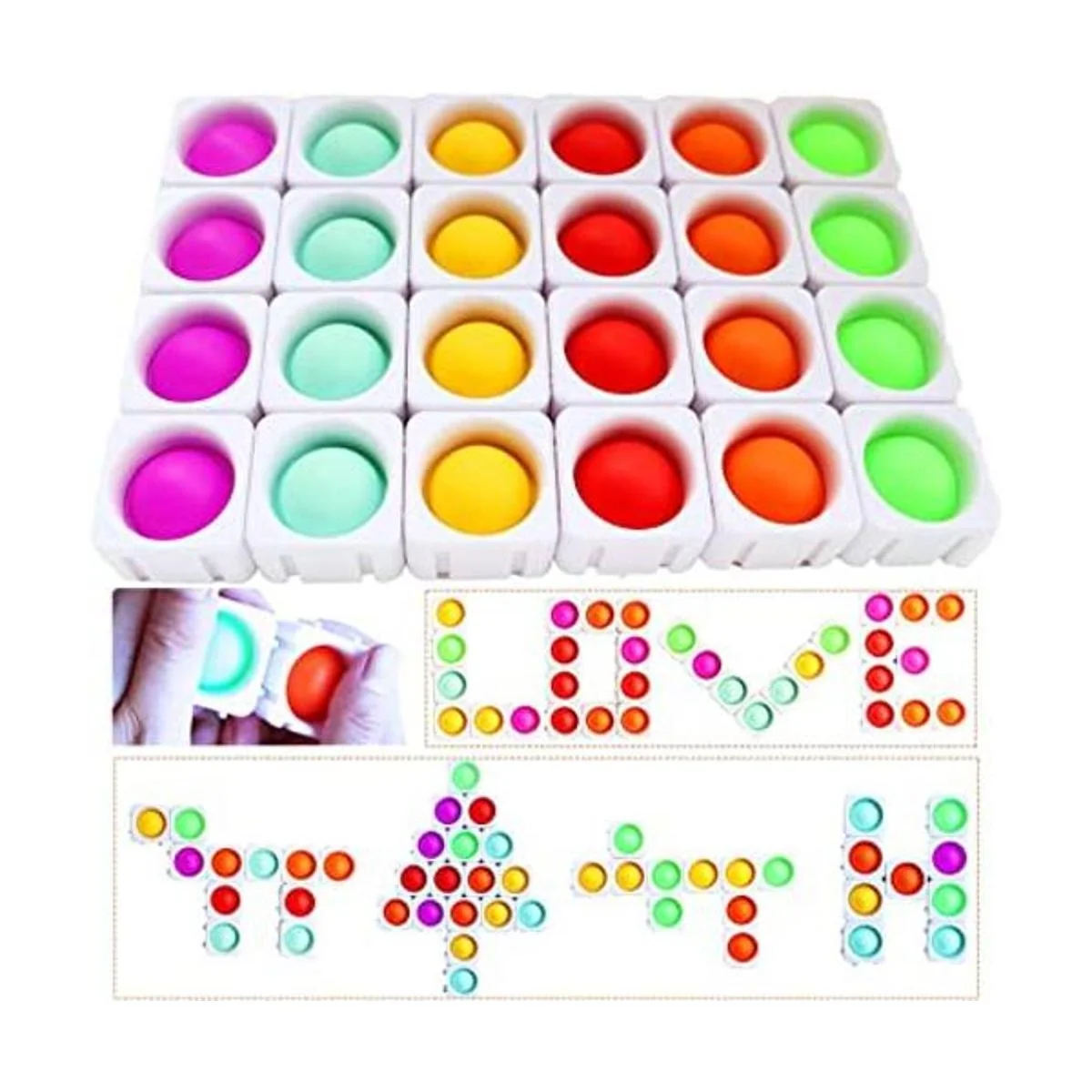 Infinity DIY Como lego, consta de 24 bloques de burbujas. Los jugadores pueden empalmar creativamente los bloques de construcción en diferentes formas letras, peces o piña, etc. , y juega diferentes juegos de rompecabezas en juguetes con diferentes formas.