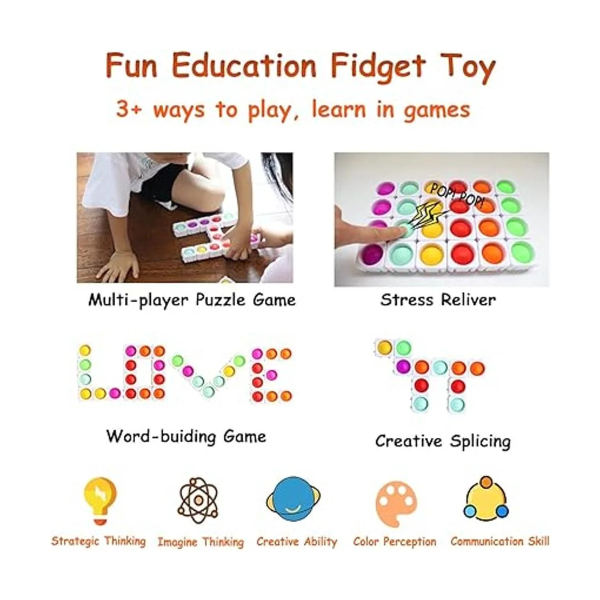 Divertidos juguetes de aprendizaje para el aula: un juguete multijugador. Más de 3 formas de jugar, como bricolaje, juego Pop, Pop, juego de rompecabezas de mesa. Perfecto como kit de enseñanza o juguete de aula o juguete de liberación de estrés para estudiantes