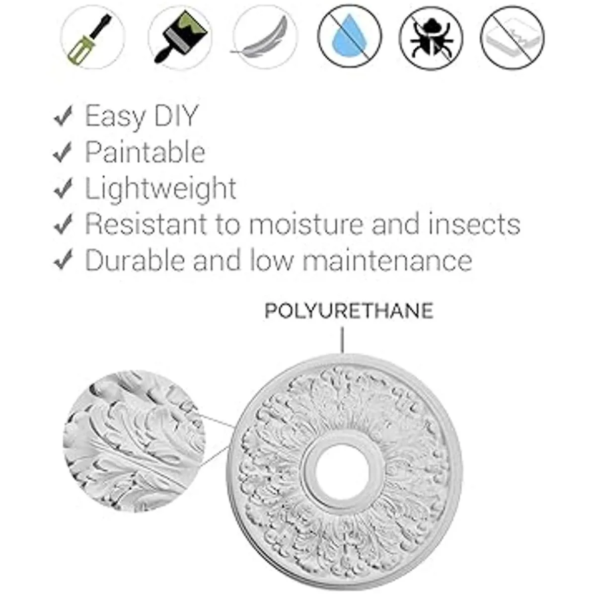 Ekena Millwork CM11HE Helene Medallón de techo, 11 78 pulgadas de diámetro x 3 58 pulgadas de diámetro interior x 78 pulgadas, imprimado de fábrica