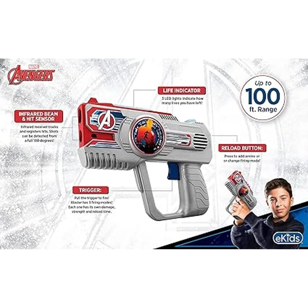 eKids La etiqueta láser de Avengers Assembly para niños con diseño de Lazer Infared se ilumina y vibra cuando se golpea