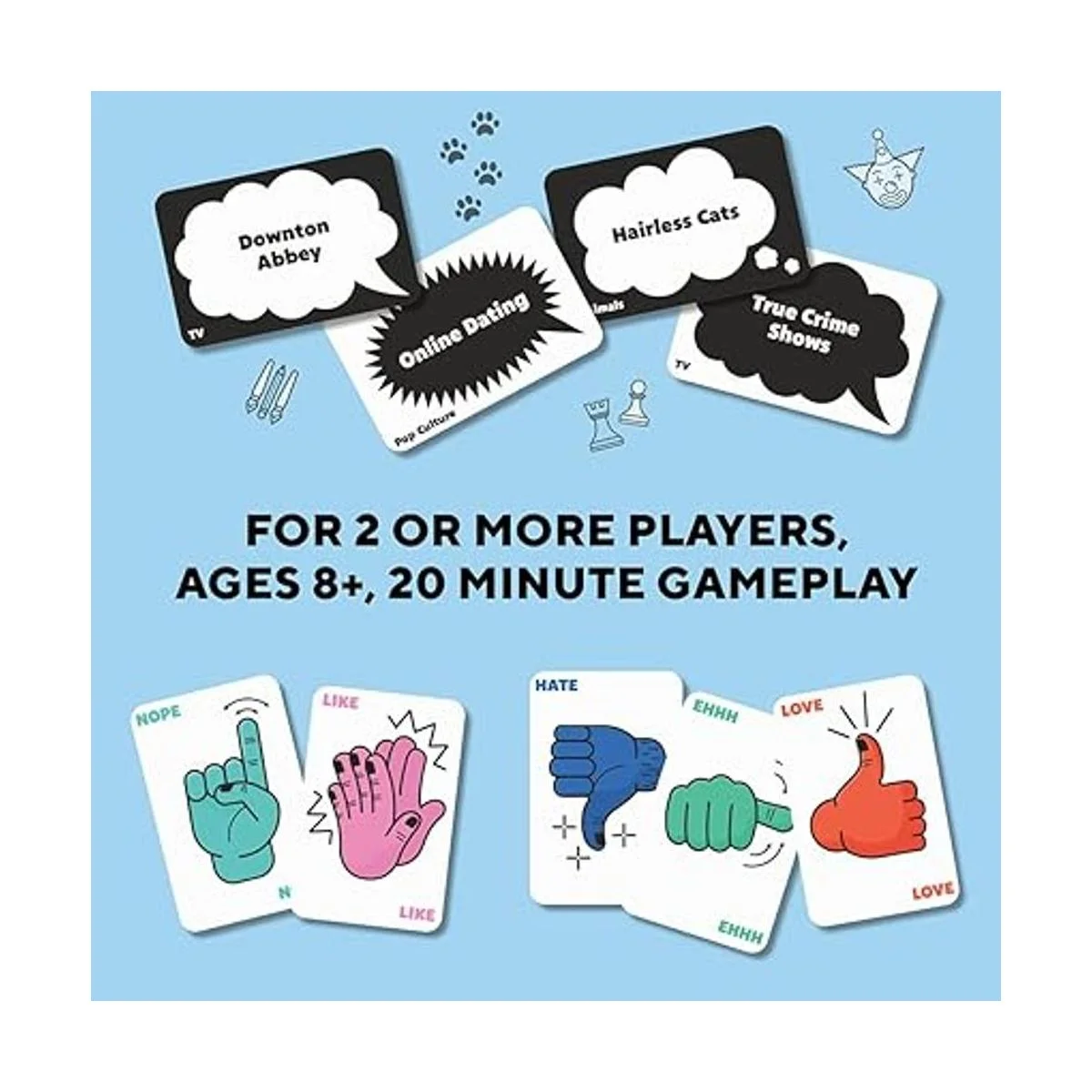 Qué tan bien conoces a tus amigos y familia Enamorado al odio de Ridley Games, descubrirás lo bien que realmente conoces a tus amigos y familia adivinando sus sentimientos en temas divisivos como piña en pizza, payasos, y ABBA