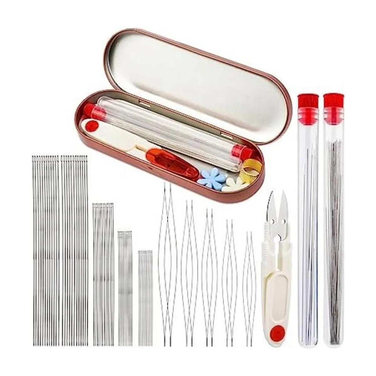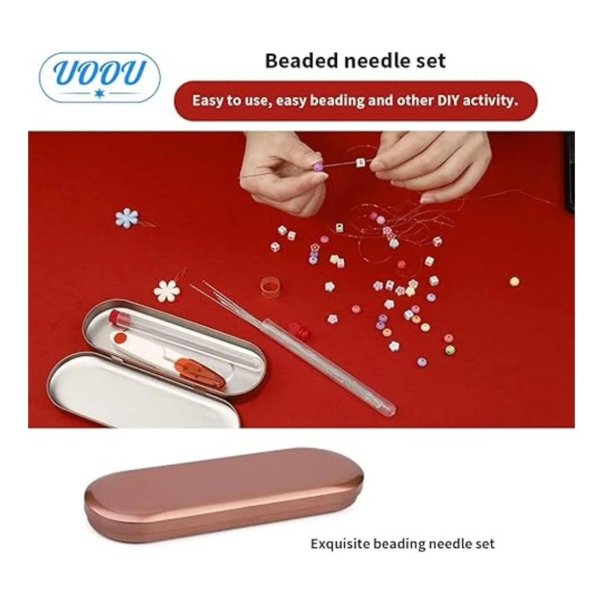 El juego de 77 agujas de cuentas incluye 60 agujas de hilo largas y rectas 10 agujas de cuentas de ojos grandes, agujas de bordado con caja de agujas, dedal, roscadores de agujas de flores para hacer joyas