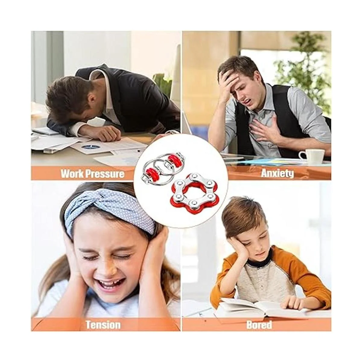 Lo que obtendrás: paquetes de 4 juguetes de cadena de rodillo y 4 cadenas de rodillos de 6 piezas para mantener tus manos ocupadas cuando estás aburrido en aulas, oficinas, hogar y escuelas