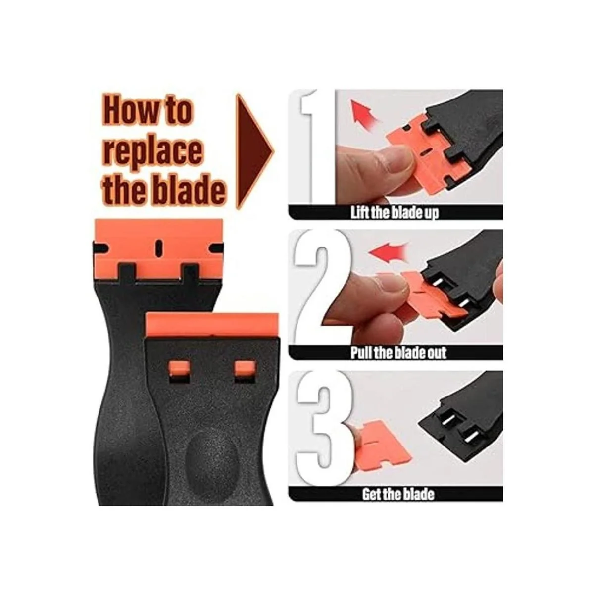 La herramienta raspadora de afeitar es ampliamente utilizada para eliminar residuos, pegamento, calcomanías, calafateo, etiquetas, calcomanías de encimeras, estufas, electrodomésticos, metal, vidrio, etc. Mantén uno en la cocina, baños, taller, caja de herramientas, oficina, coche, barco, caravana, motocicleta.