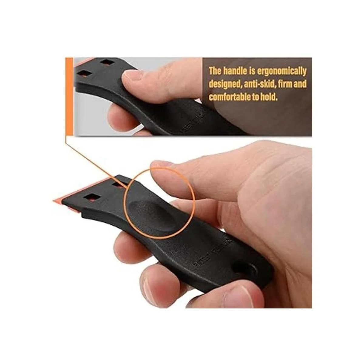 Diseño ergonómico de mango curvado para un mayor control y comodidad, permite que todas tus necesidades de pelado, raspado y limpieza en tu hogar funcionen más fácilmente. Rascador de afeitar de tamaño pequeño para quitar etiquetas, fácil de llevar en el bolsillo o kit de herramientas al hacer la limpieza exterior.