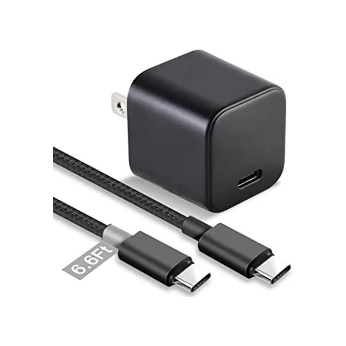 Adaptador de corriente USB tipo C de carga rápida de 15 W, con cable USB tipo C a tipo C de 6.6 pies incluido.
