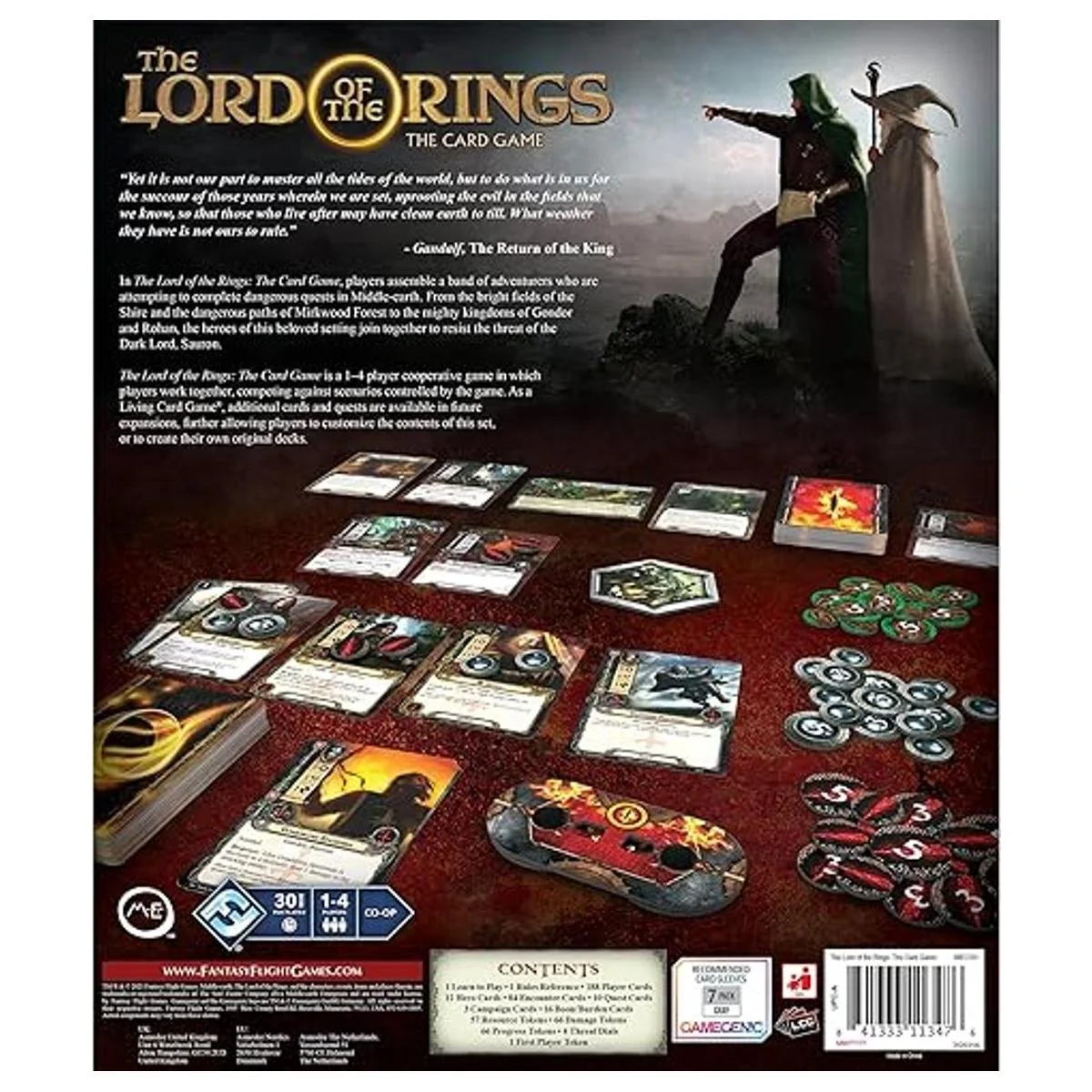 Juego de aventura cooperativo: este épico juego de cartas pone a los jugadores en control de algunos de los mejores héroes y artefactos de la Tierra Media. Selecciona héroes, reúne aliados, adquiere artefactos y coordina tus esfuerzos para enfrentar los amigos más peligrosos de la Tierra Media. Trabaja juntos para superar los obstáculos extraídos de la baraja de encuentro para completar la búsqueda y reclamar la victoria
