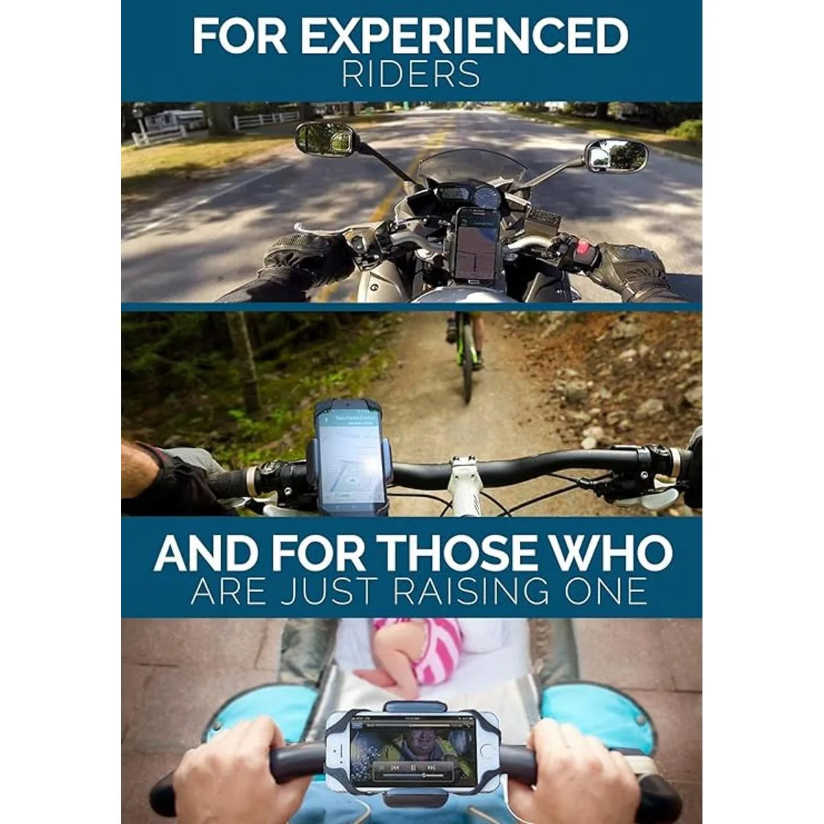 Universal fuera y fuera: lo decimos en serio, monta cualquier teléfono en cualquier bicicleta o motocicleta con manubrio tubular El soporte se adapta a cualquier dispositivo de hasta 3.7 pulgadas de ancho y se adapta a todos los manillares de 0.6 a 1.3 pulgadas de diámetro. No requiere herramientas para la instalación.