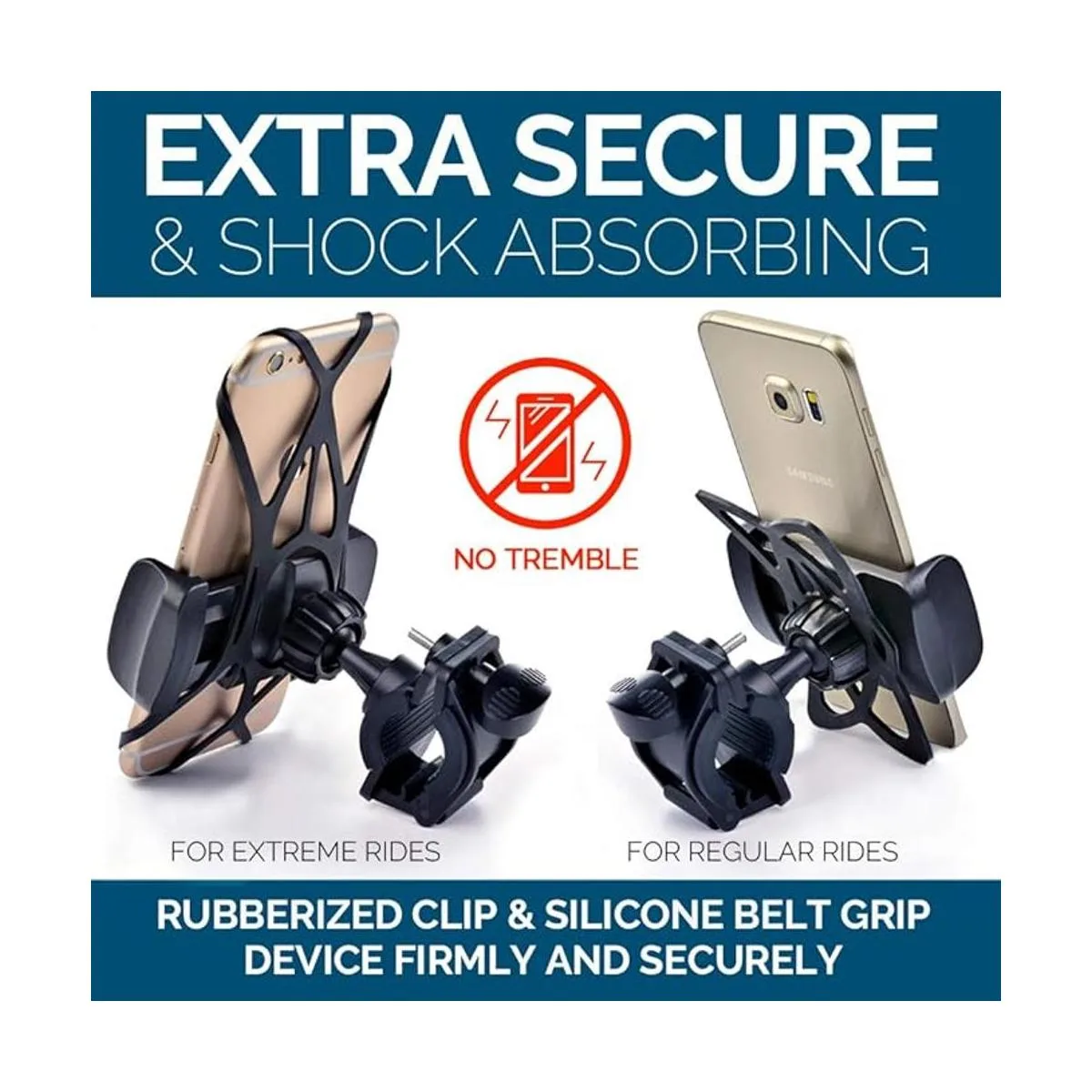Clip de goma extra seguro y absorbente de golpes con cinturón de silicona que sujeta el dispositivo de forma firme y segura. La correa envuelve alrededor de cuatro esquinas de teléfono celular de cualquier tamaño incluso cuando está en una funda a prueba de vida. Esto se mantiene apretado, hace el viaje más extremo, el teléfono no se caerá La abrazadera de barra metálica es irrompible
