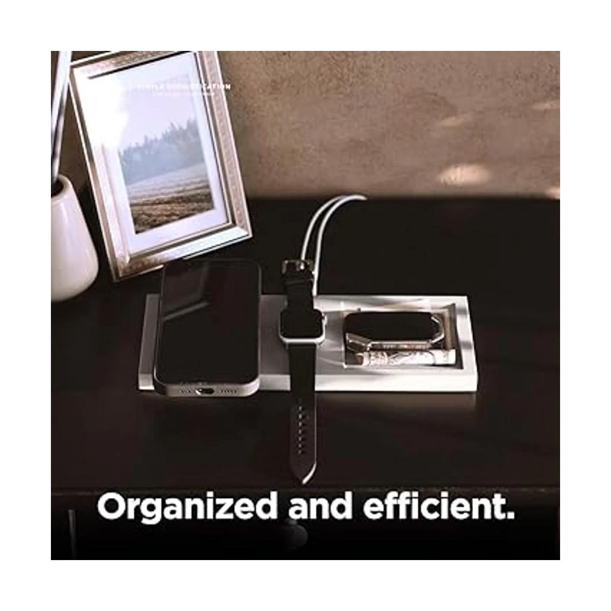 elago La nueva bandeja Duo es compatible con MagSafe y ayuda a organizar tu espacio proporcionando un área para mantener tus cosas en un solo lugar. Mantén tu escritorio o mostrador organizado mientras cargas tu teléfono y Apple Watch