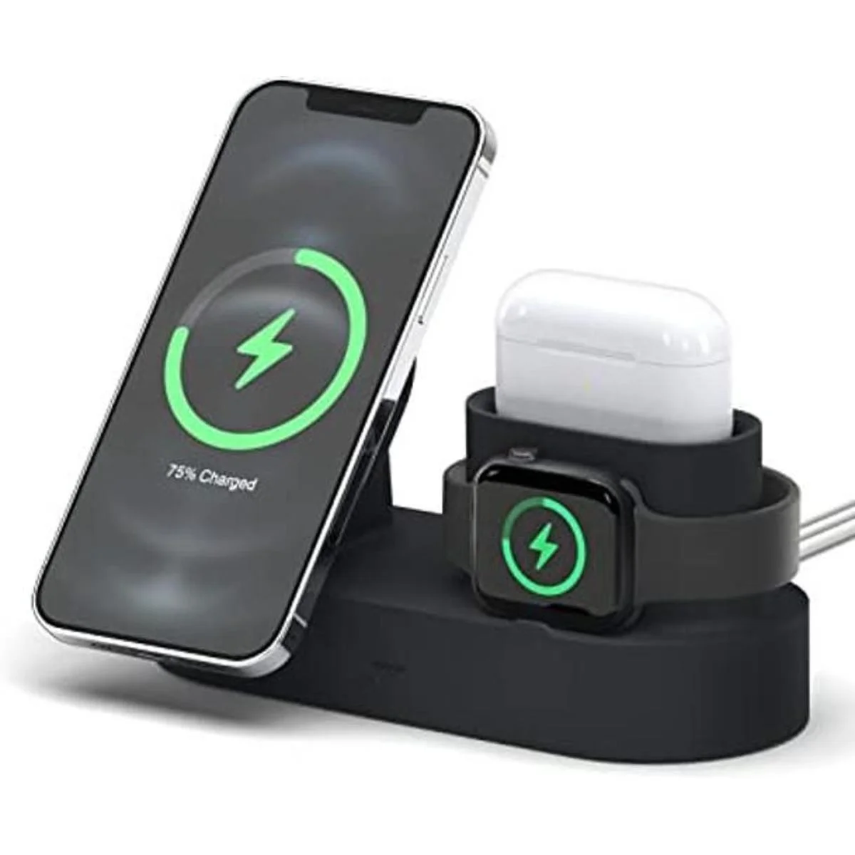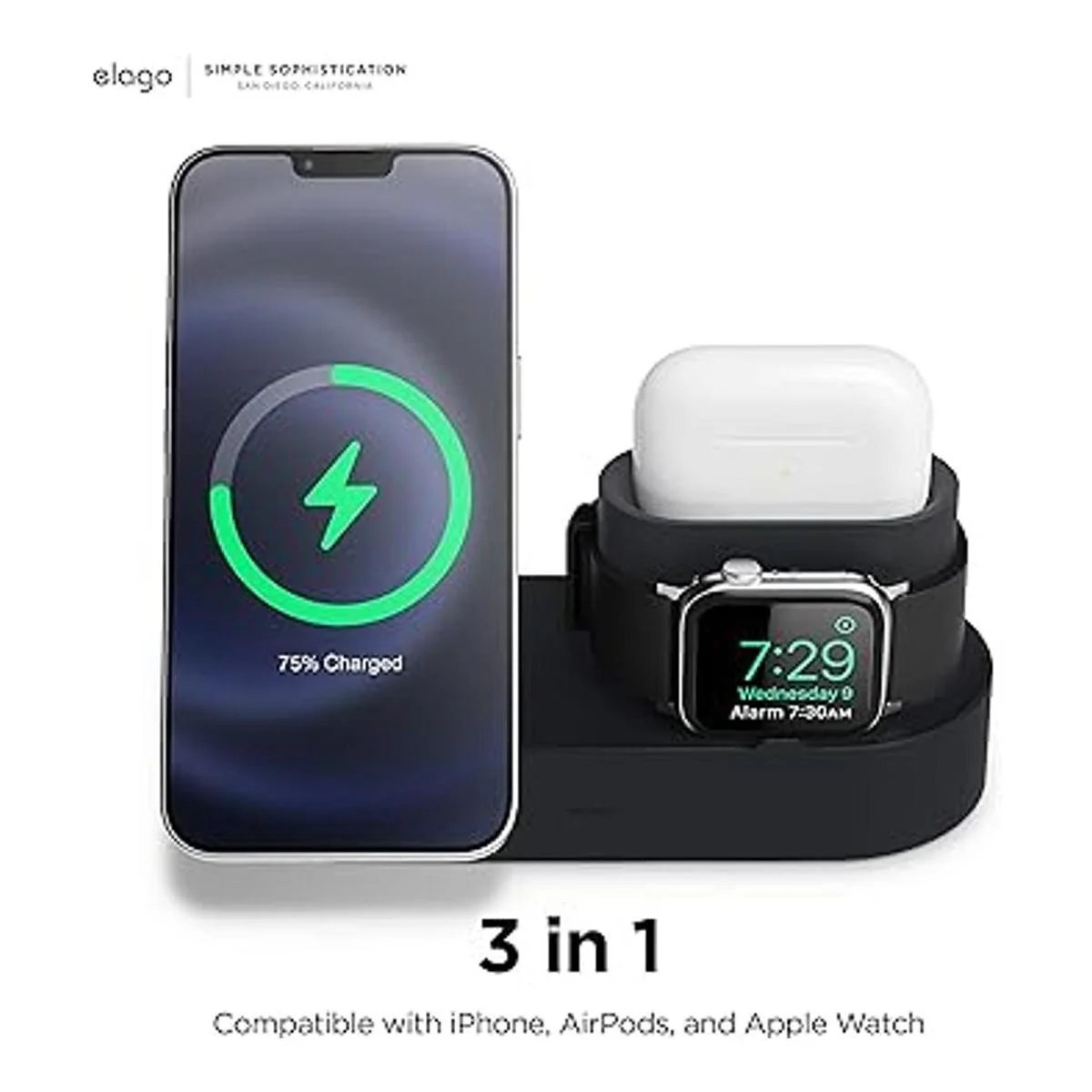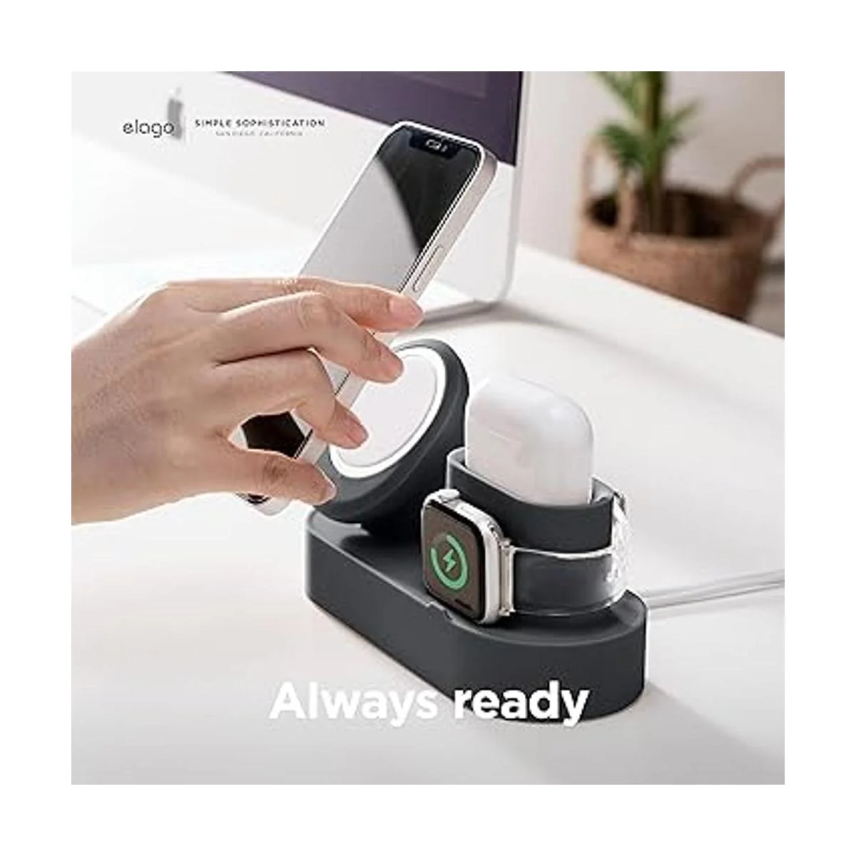 ELAGO Está allanando el camino para nuevos accesorios compatibles con MagSafe Uno de los primeros diseños que se crean a partir de arañazos es el hub de carga MS Trio 2, el complemento perfecto para tu escritorio, mesita de noche o mostrador Ideal para uso personal o un regalo para cualquier persona que necesite una solución de carga todo en uno