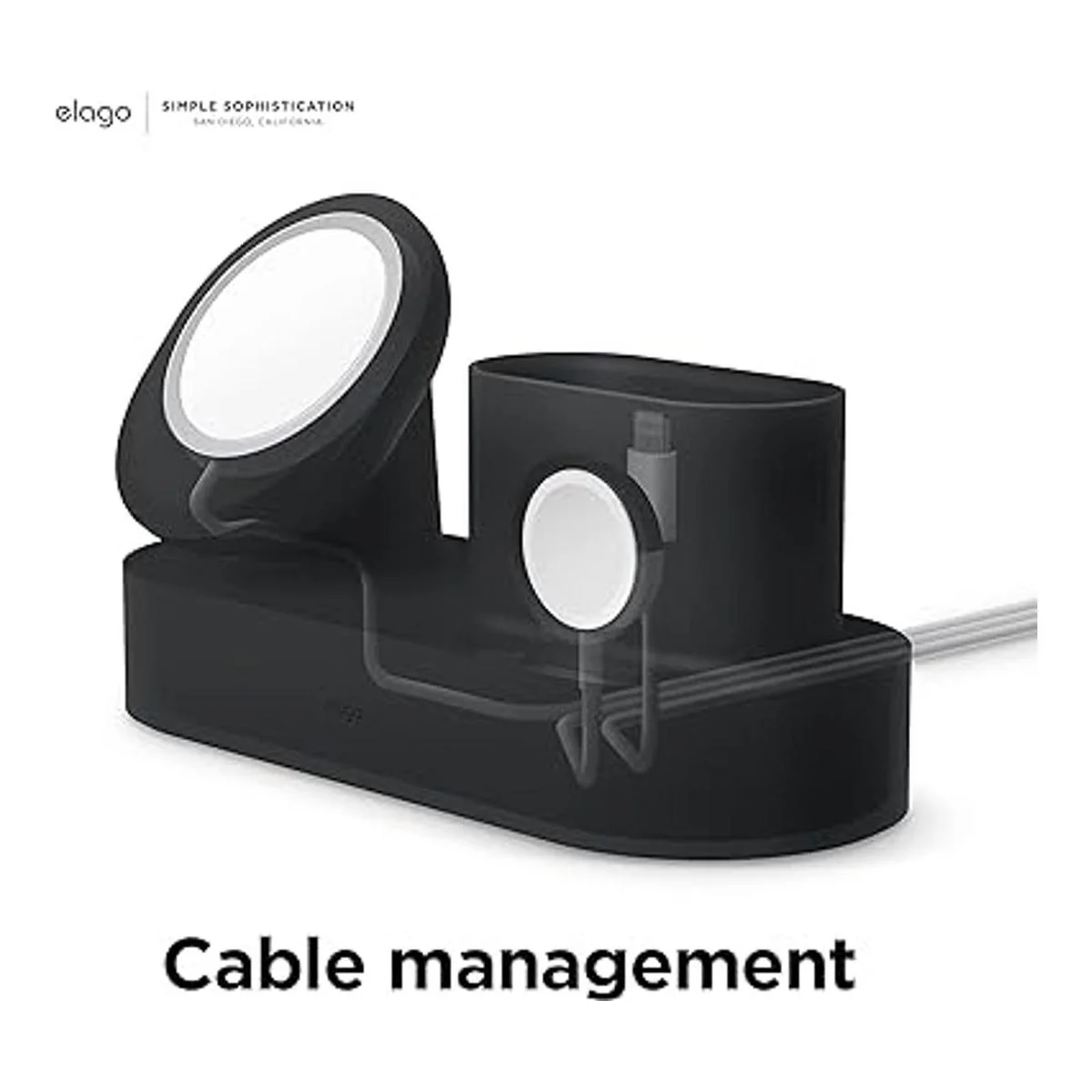 elago Estación de carga MS 2 Compatible con iPhone 14, iPhone 13, MagSafe Charger, iPhone 12, AirPods Pro 2, AirPods Pro, AirPods 3 y todas las series Apple Watch Negro Cables de carga no incluidos