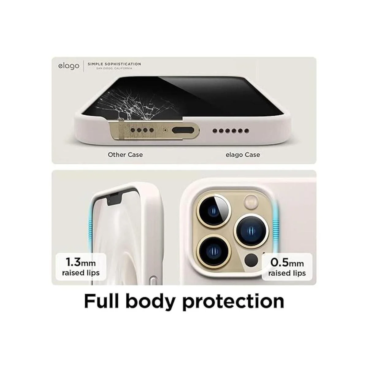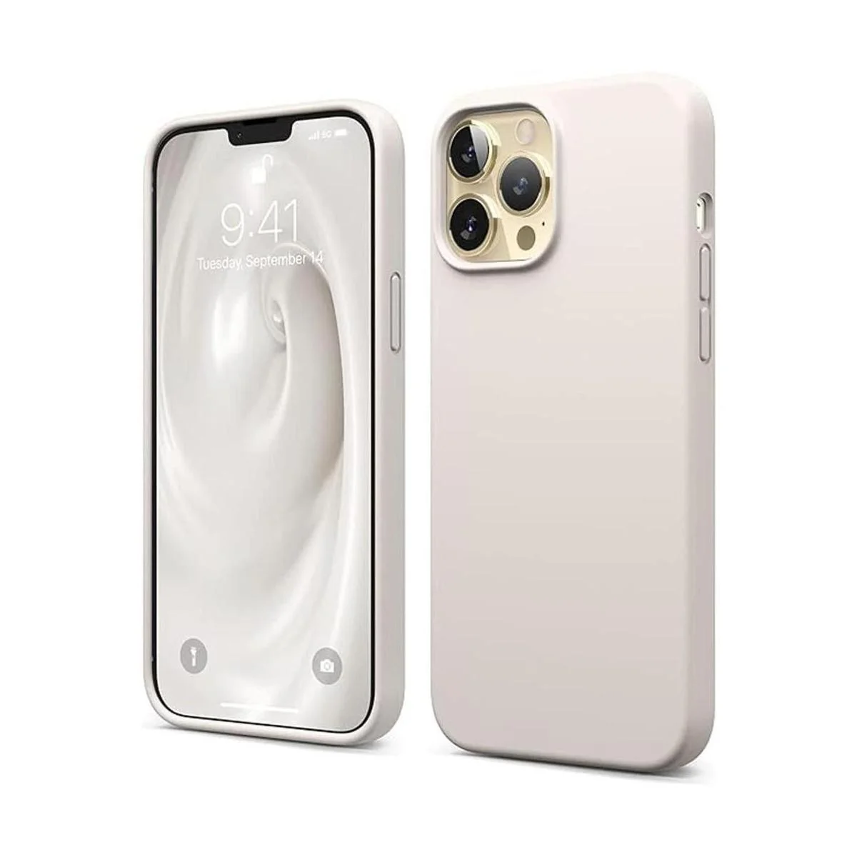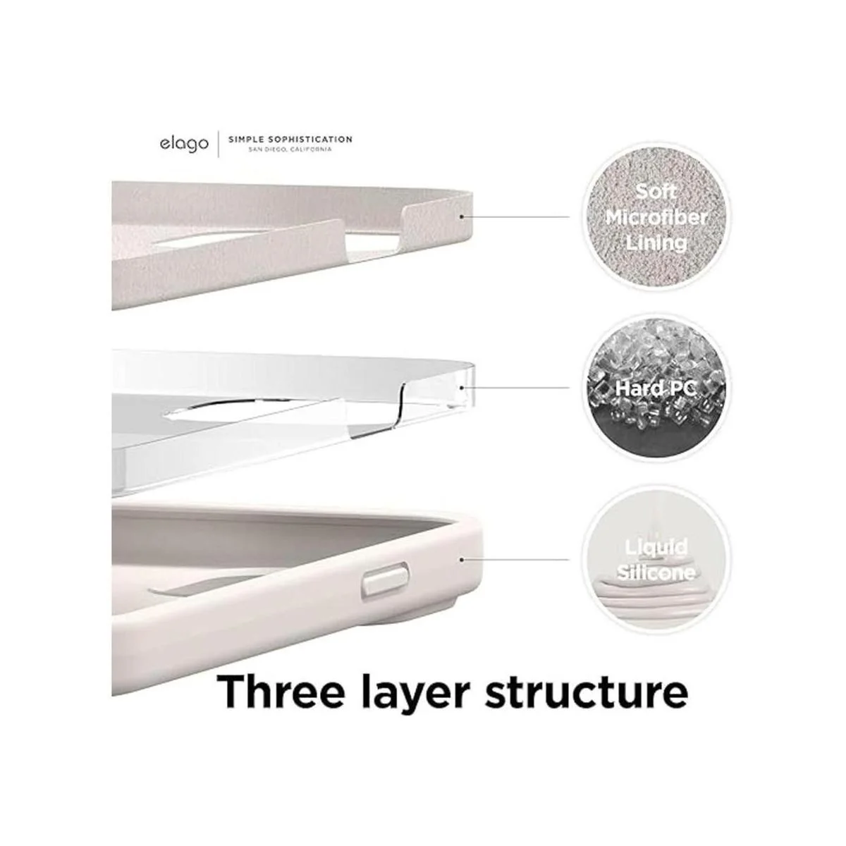 elago Funda compatible con iPhone 13 Pro Max, funda de silicona líquida, funda protectora de cámara de cuerpo completo, a prueba de golpes, funda delgada para teléfono, forro de microfibra suave antiarañazos, 6.7 pulgadas piedra
