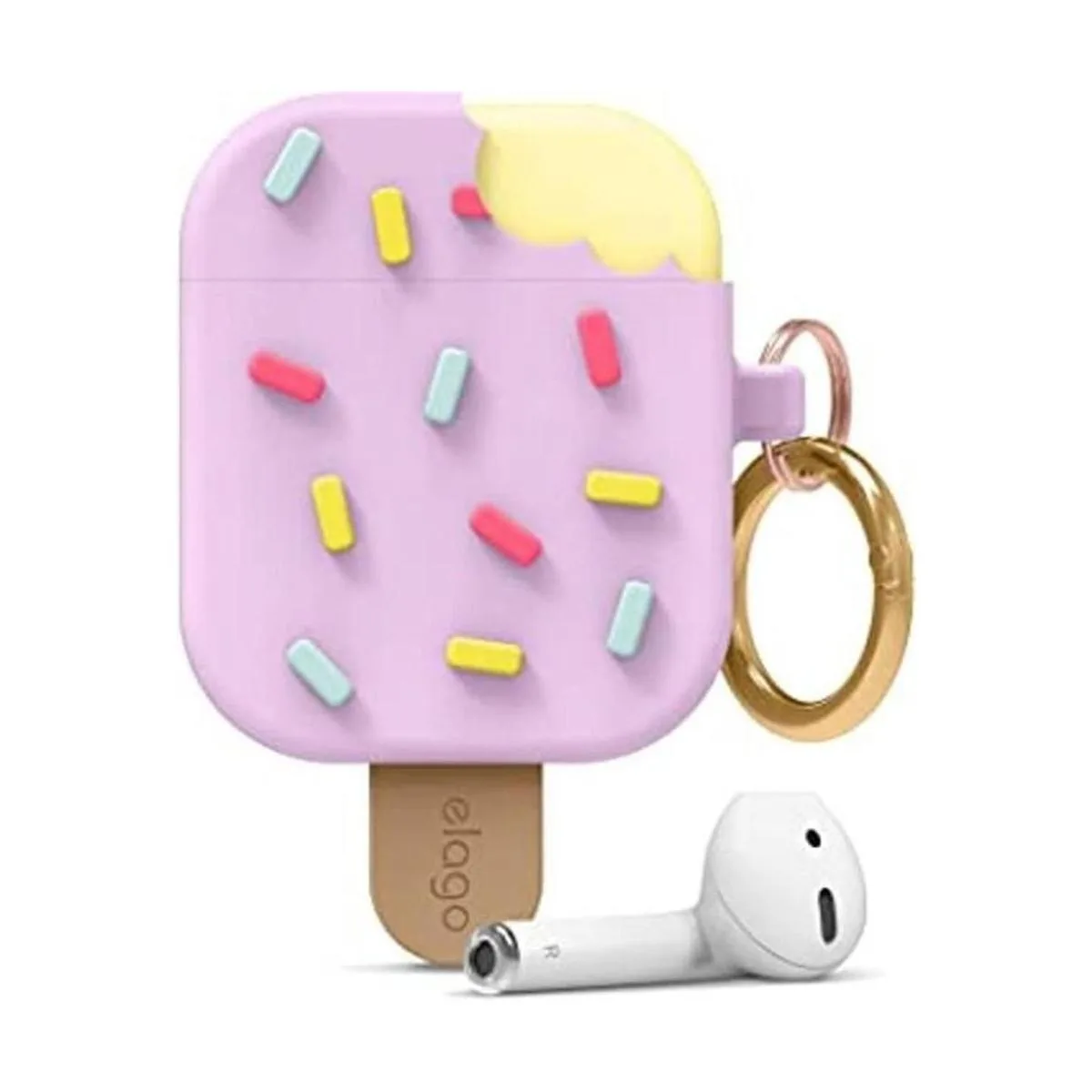 Elago Funda con llavero para audífonos AirPods 1 y 2 de Apple en forma de helado.