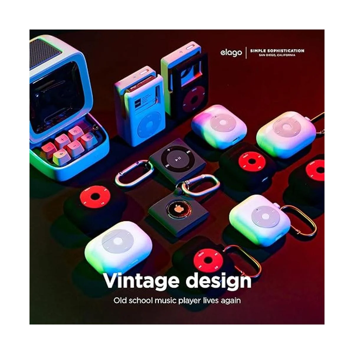 elago Funda Shuffle compatible con Apple AirTags gris oscuro diseñada para etiquetas de aire, protección contra caídas, diseño clásico de reproductor de MP3 retro perros de pista, llaves, mochilas, bolsos etiqueta de seguimiento no incluida