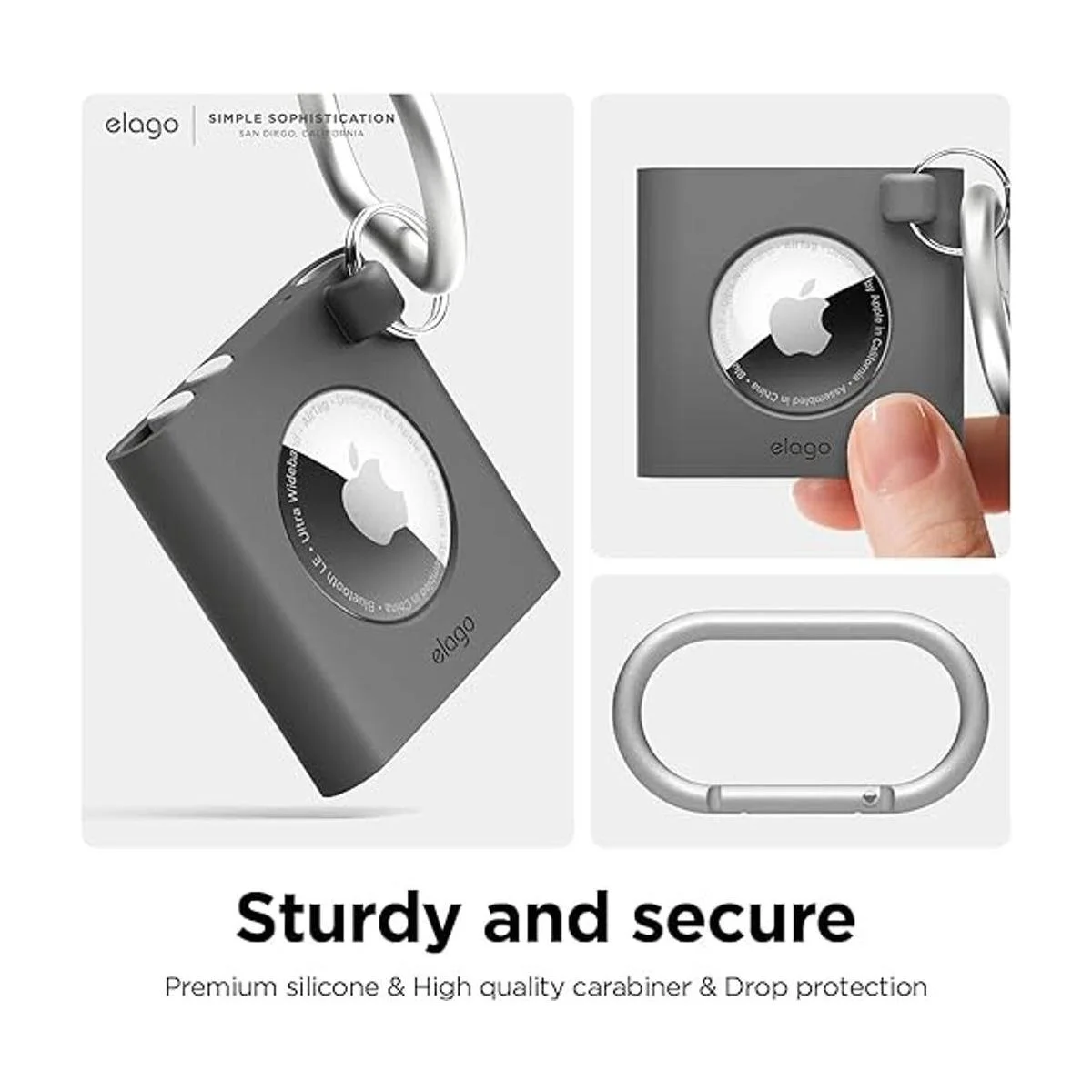ELAGO Es el camino para nuevos accesorios compatibles con AirTags Uno de los primeros diseños que se crean contra arañazos es la funda W7, que sostiene tu dispositivo de seguimiento de forma segura mientras lo protege del uso diario y las caídas