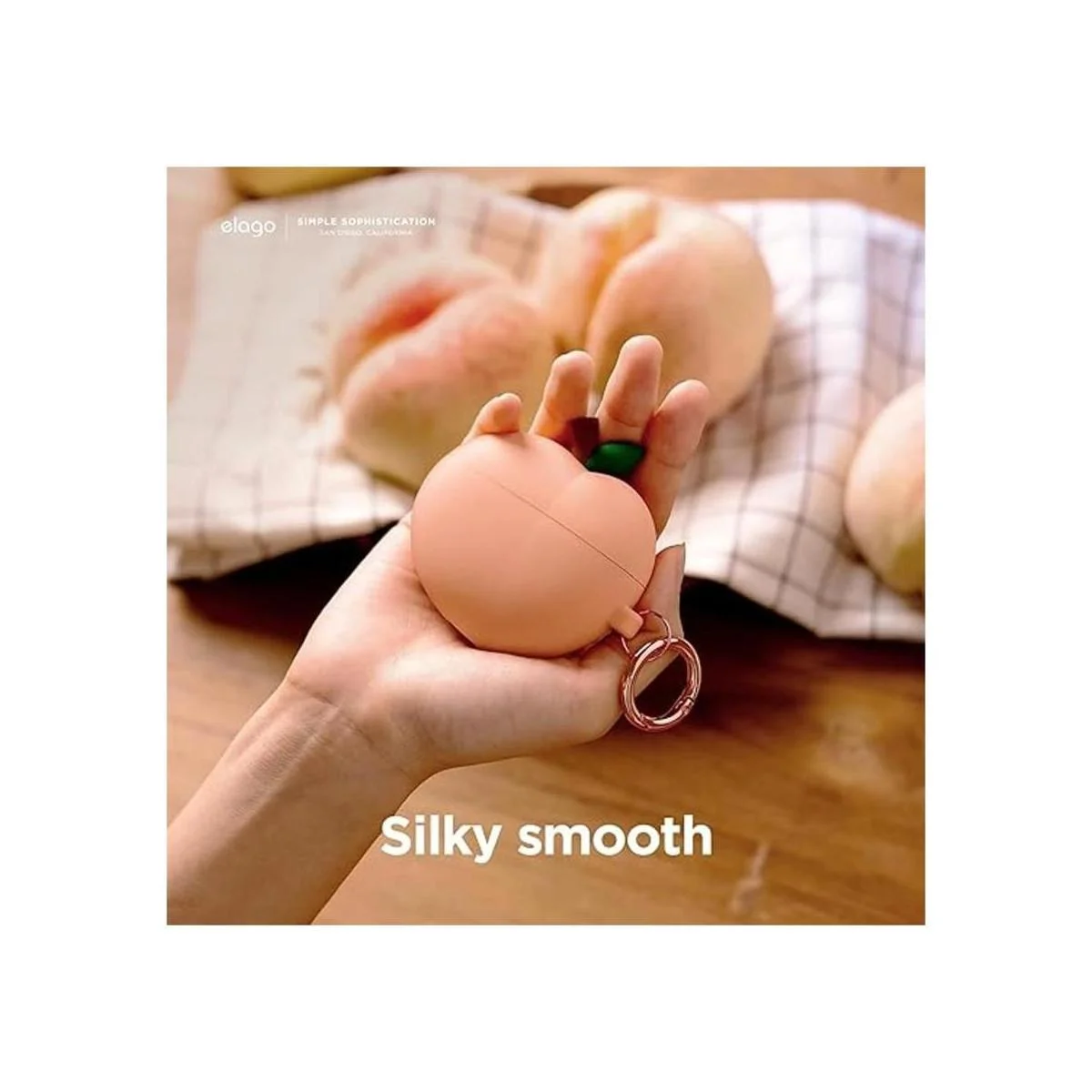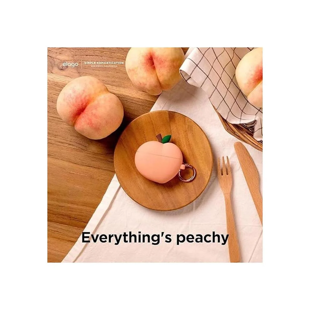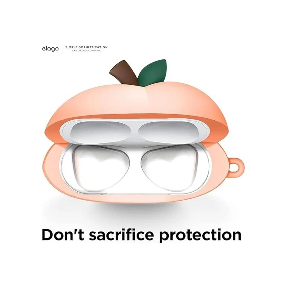 elago Peach Funda compatible con AirPods 3, bonita funda de diseño 3D compatible con AirPods de 3 generación 2021, funda protectora de silicona con llavero, carga inalámbrica, funda de anime femenina