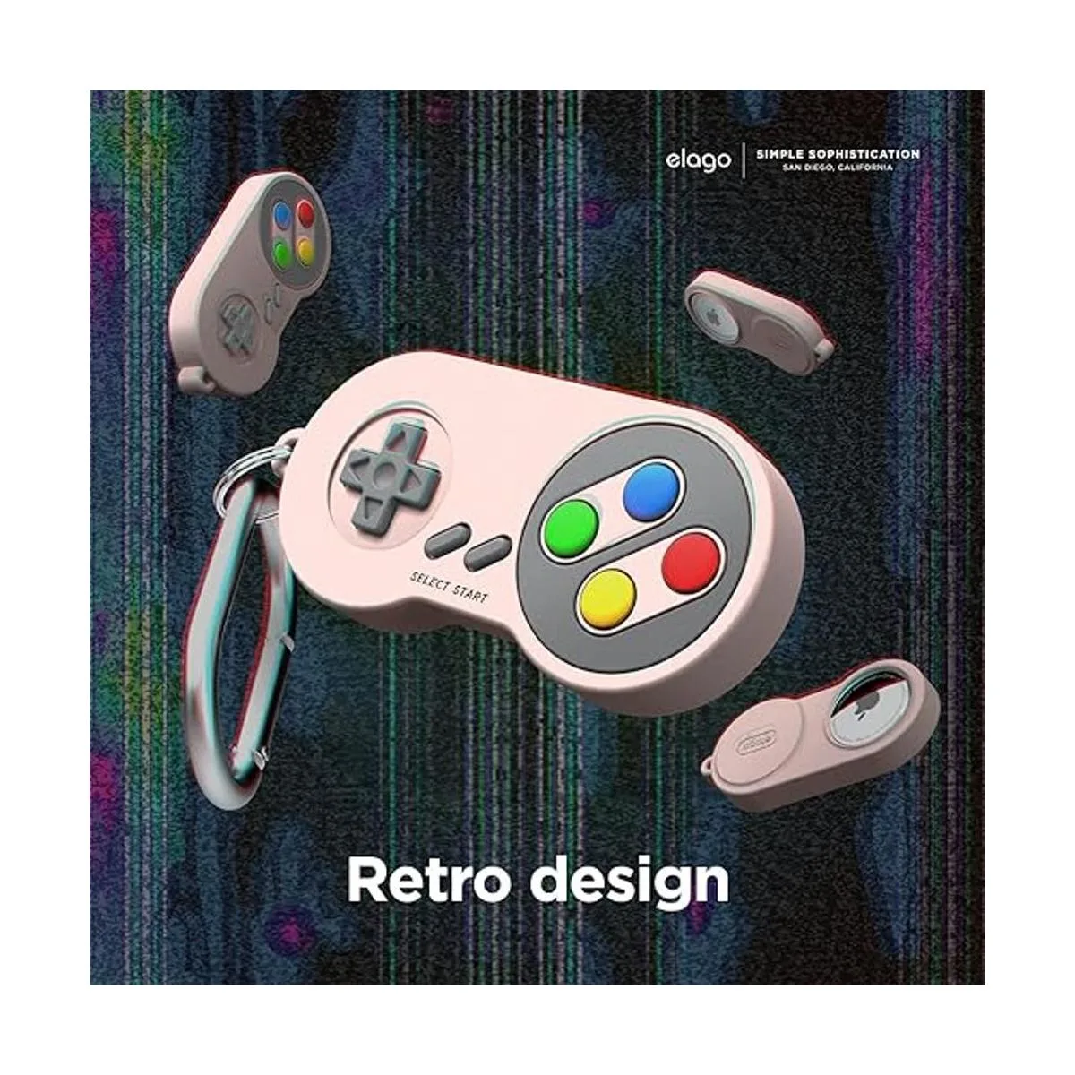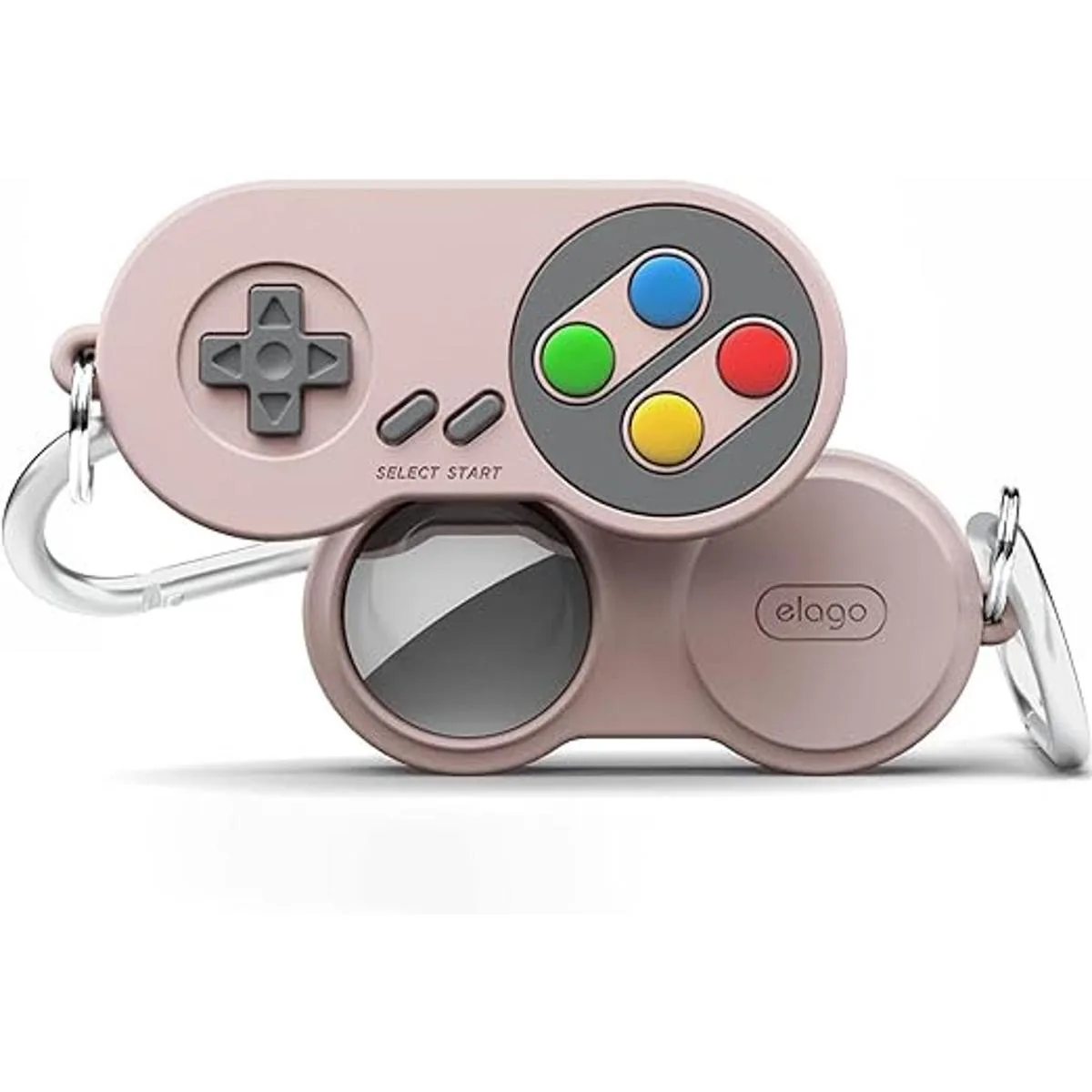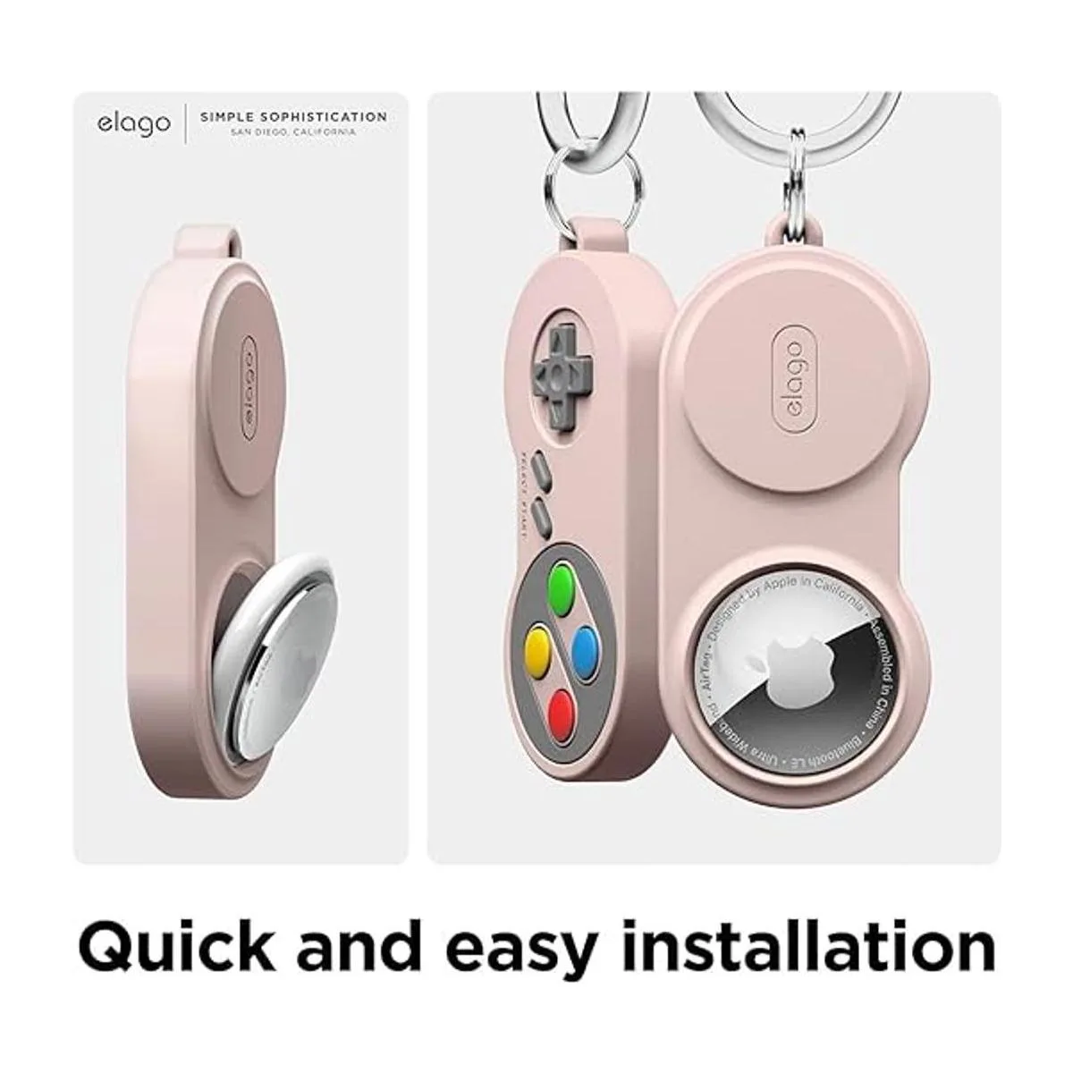 elago W5 Funda de llavero compatible con Apple AirTags, protección contra caídas, mosquetón, diseño clásico de consola de juegos de mano pistas de perros, llaves, mochilas, bolsos Dispositivo no incluido rosa arena