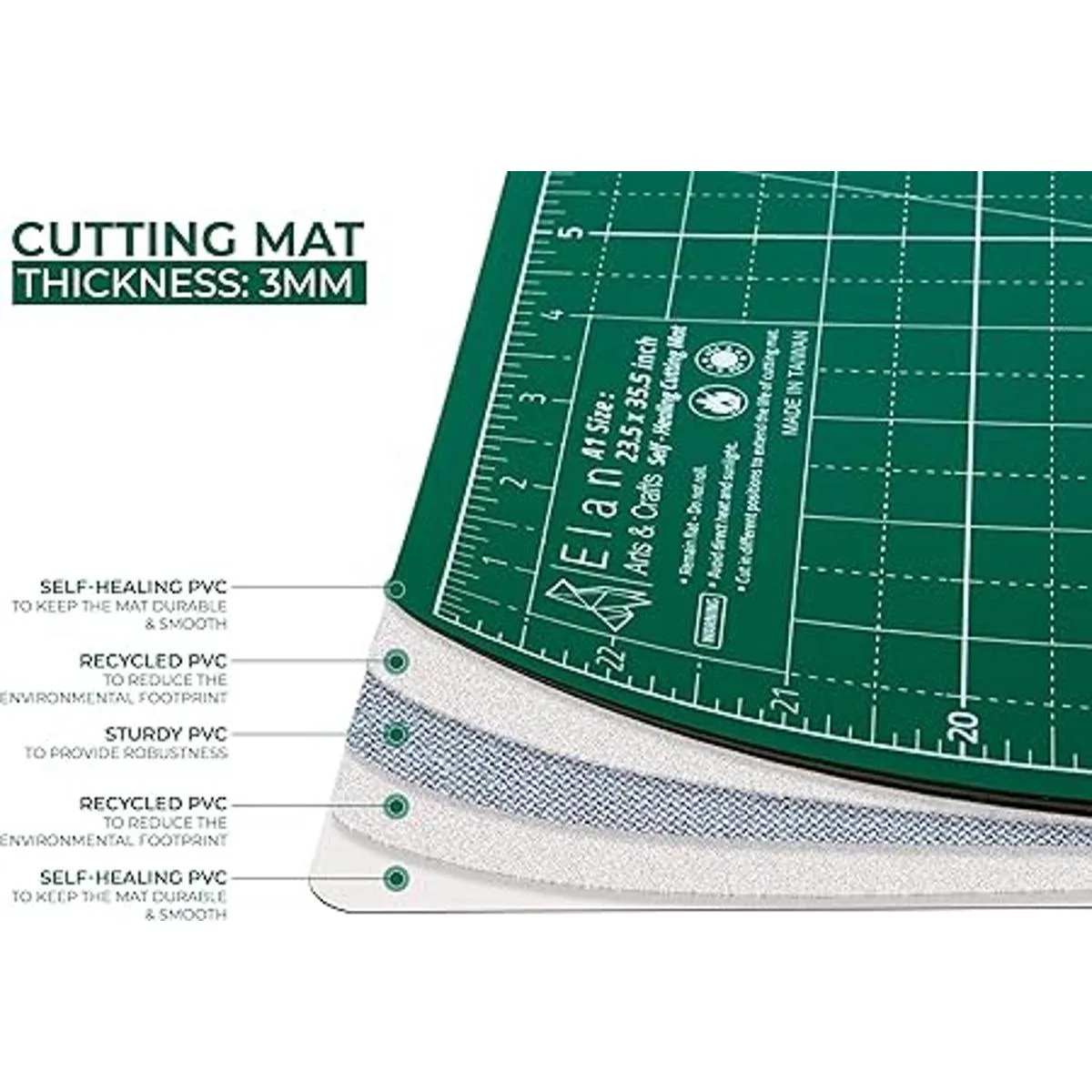 Elan Tapete de corte A3 verde, tapete de 5 capas, tapete de corte autocurativo de 18 x 12 pulgadas, tabla de cortar artesanal, tapete de costura imperial, tapete de acolchado, tapete de pasatiempos, para coser, acolchar, suministros de acolchado