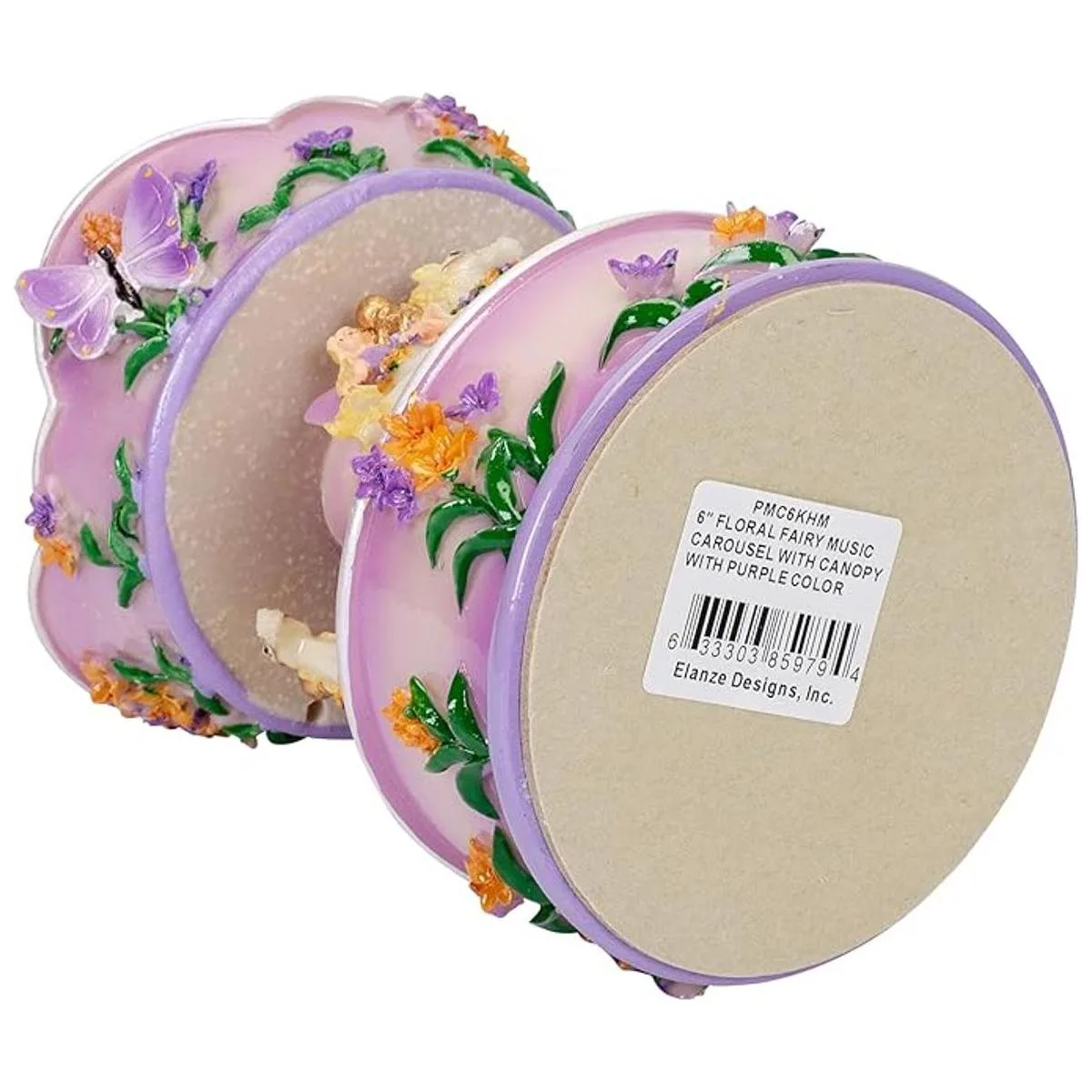 Elanze Designs Figura de carrusel musical, diseño floral, color morado, 6.0 in