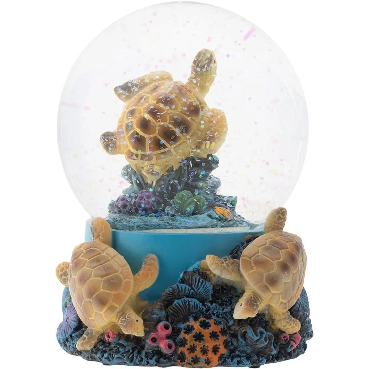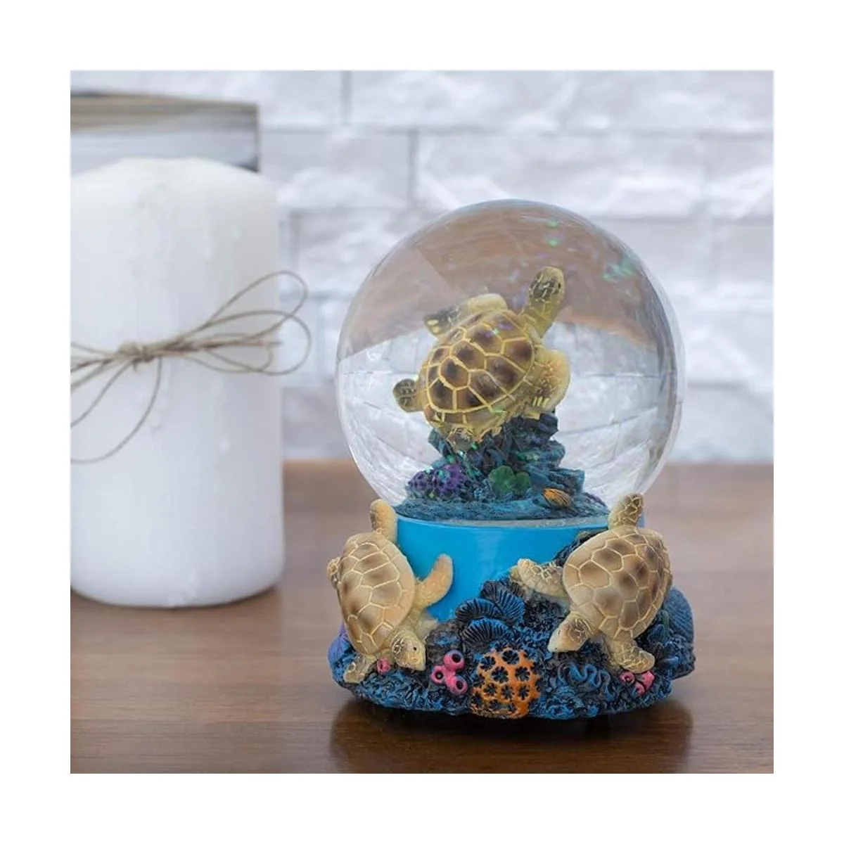 Dimensiones: la figura dentro del globo de agua representa una tortuga marina nadando en el océano. La base del pedestal está hecha de material de piedra de polímero de resina con tortugas marinas dimensionales en un arrecife de coral.
