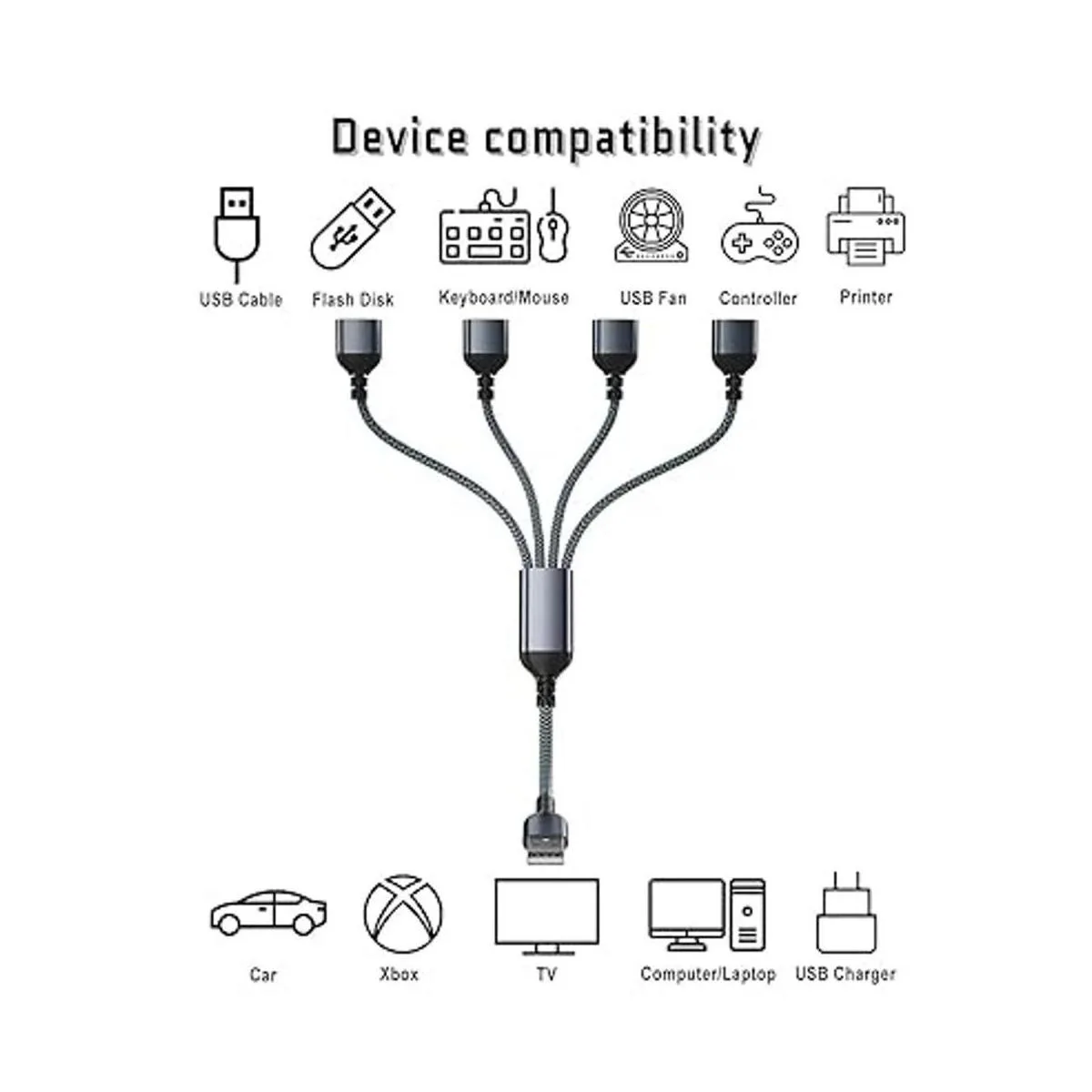 Elebase Cable divisor USB Y de 1 pie, 1 macho a 4 hembra, extensor de puerto USB múltiple, cargador de datos multipuerto, adaptador dividido para MacBook, coche, Xbox One Series XS, unidad flash, disco duro, laptop