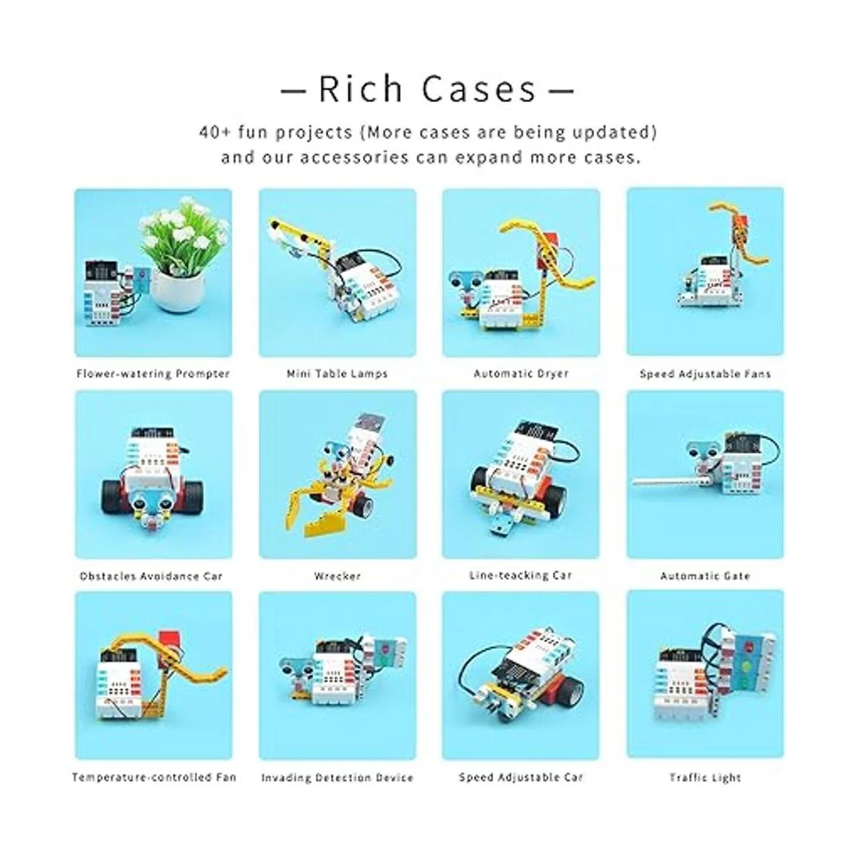 Más de 40 fundas divertidas de programación actualizadas continuamente y más de 400 ladrillos: no se limita a los casos existentes, los niños pueden crear lo que quieren. El propósito es cultivar e inspirar la creatividad y la imaginación de los niños.