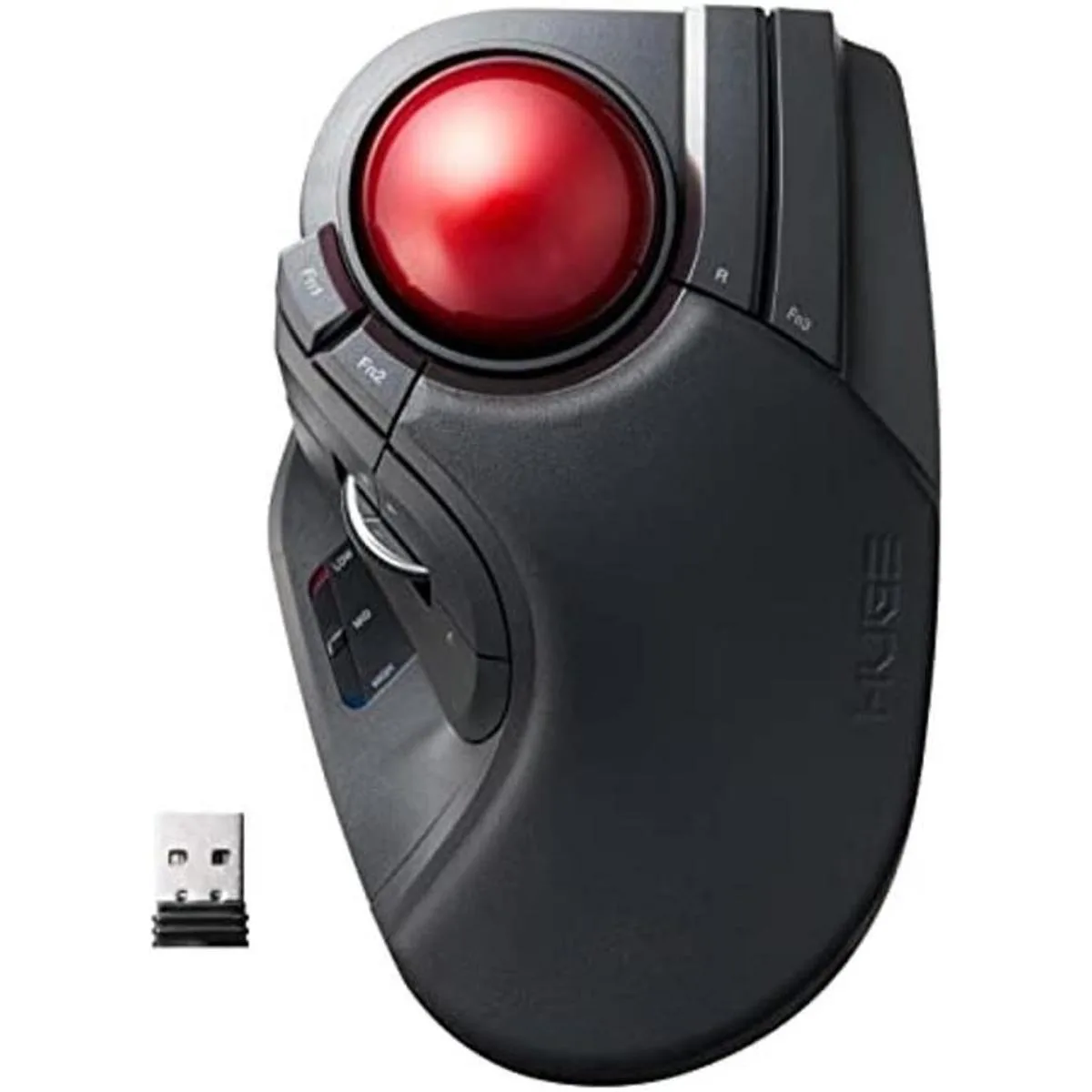 ELECOM Gran mouse Trackball, inalámbrico de 2.4 GHz, control de dedos, función de 8 botones, sensor óptico de precisión para juegos, reposamanos adjunto, bola roja lisa, Windows11, macOS MHT1DRBK