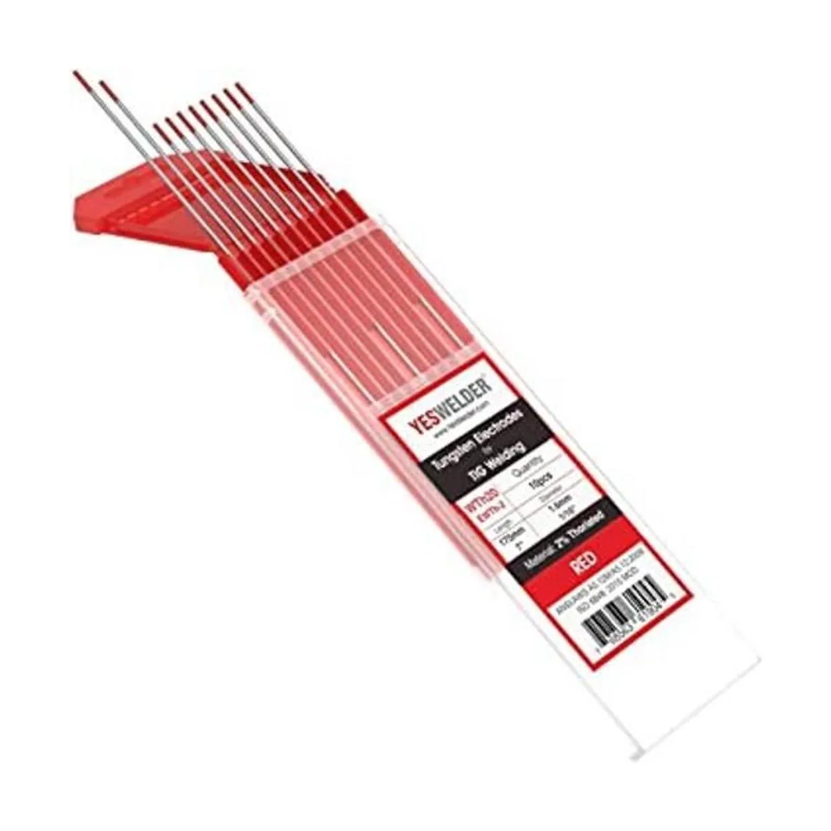 Electrodo de tungsteno de soldadura TIG 2 Thoriated 116 x 7 rojo, EWTh2 10pk YESWELDER