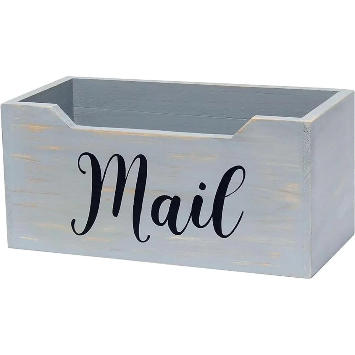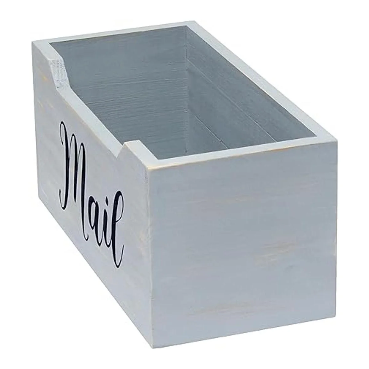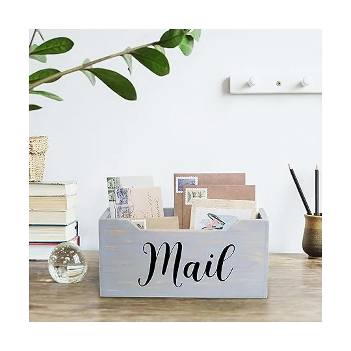 Elegant Designs HG2010GMB Mesa rústica de madera de campo, caja organizadora de correo de palabras con escritura negra, soporte para cartas, accesorios de oficina, decoración de color gris