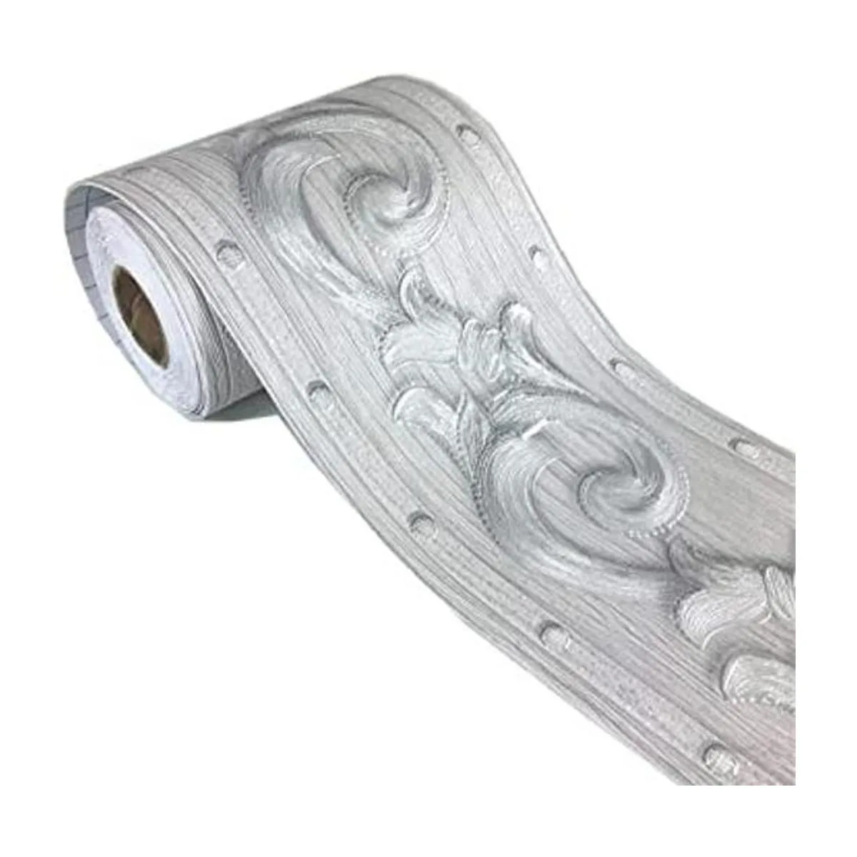Elegante papel tapiz de moldura floral gris plateado con borde decorativo para el hogar, techo, para baño, sala de estar, cocina, 4 x 16.4 pies