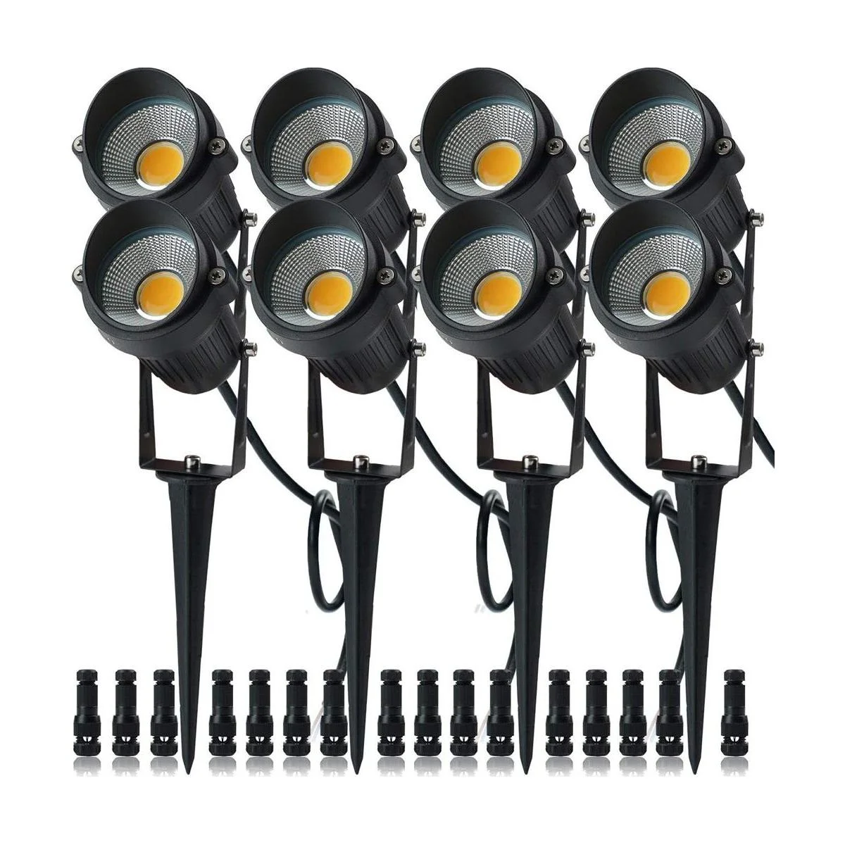ELEGLO Luces LED de paisaje de bajo voltaje de 5 W, iluminación de paisaje de 12 V24 V CACC, focos de bandera de árbol de césped al aire libre con soporte de pico, luces de camino de jardín impermeables IP65 paquete de 8 unidades blanco cálido con conector