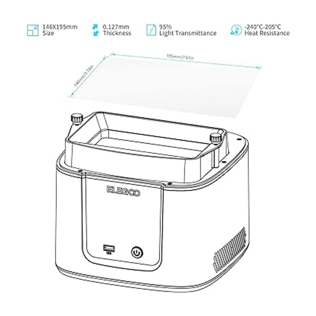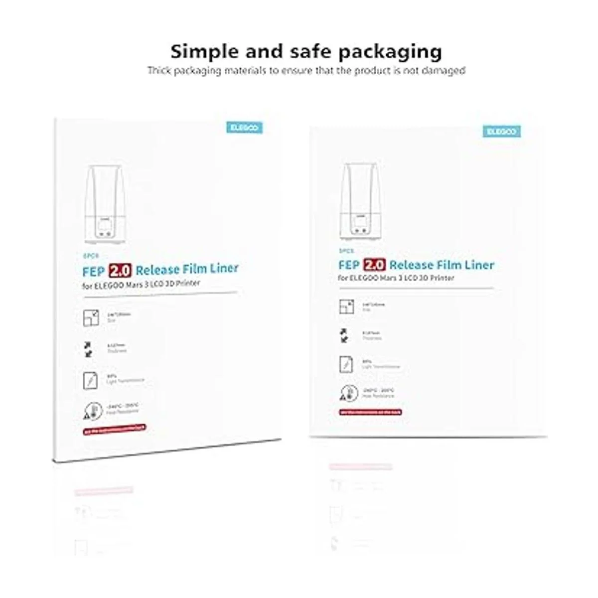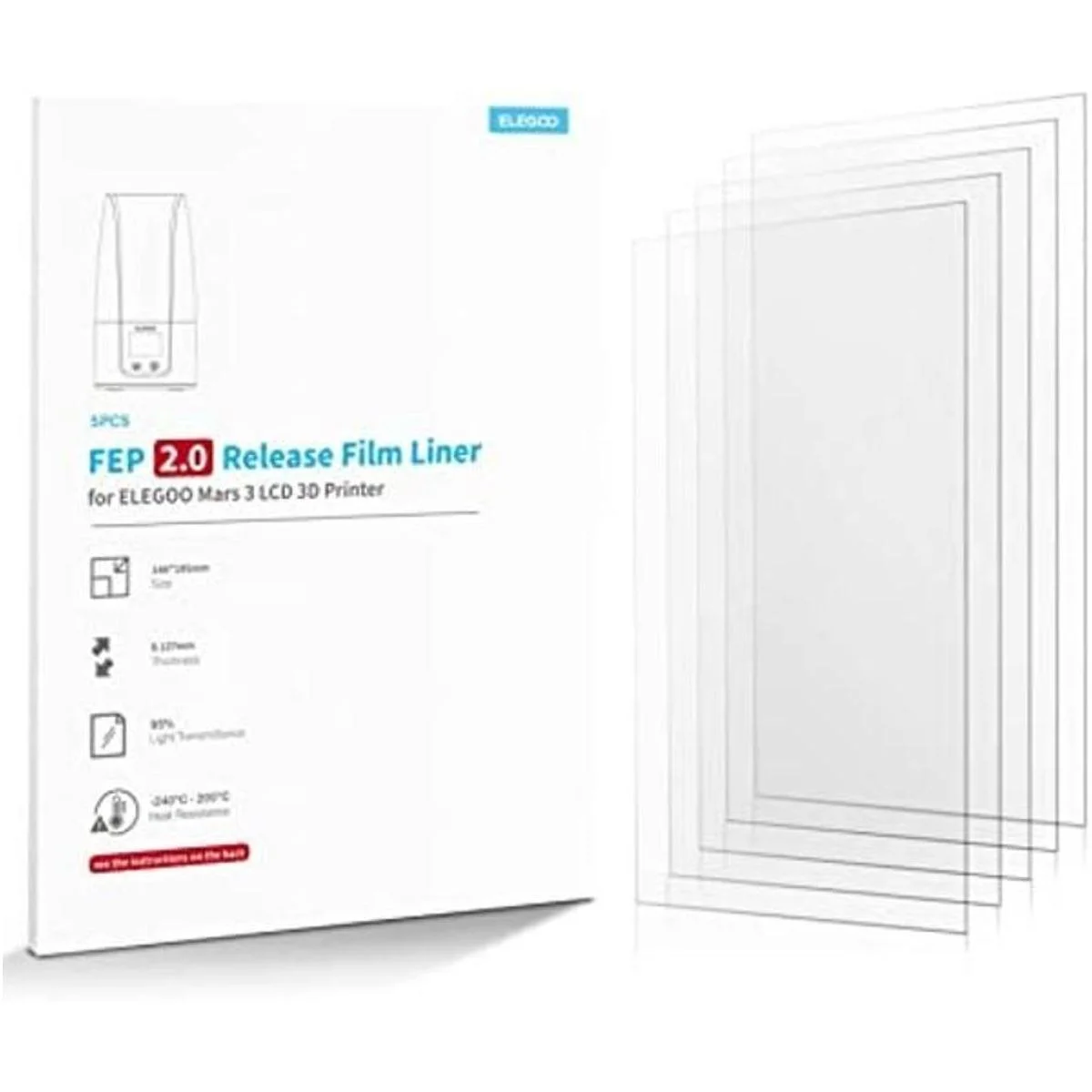 ELEGOO 5 piezas de película de liberación V2.0 PFA Marte LCD 3D impresora 5.748 x 7.677 in y 0.005 in de grosor con una funcionalidad de liberación más fuerte