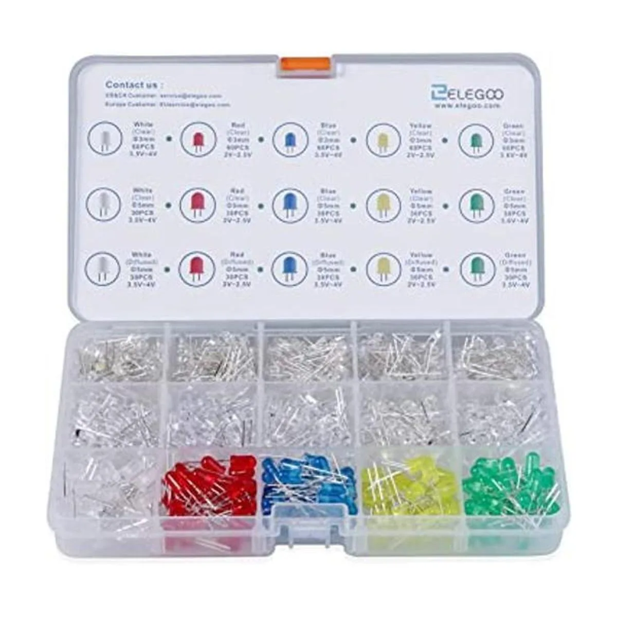 ELEGOO Kit de luces LED surtidas y transparentes de 0.118 in y 0.197 in, 5 colores compatibles con Arduino paquete de 600