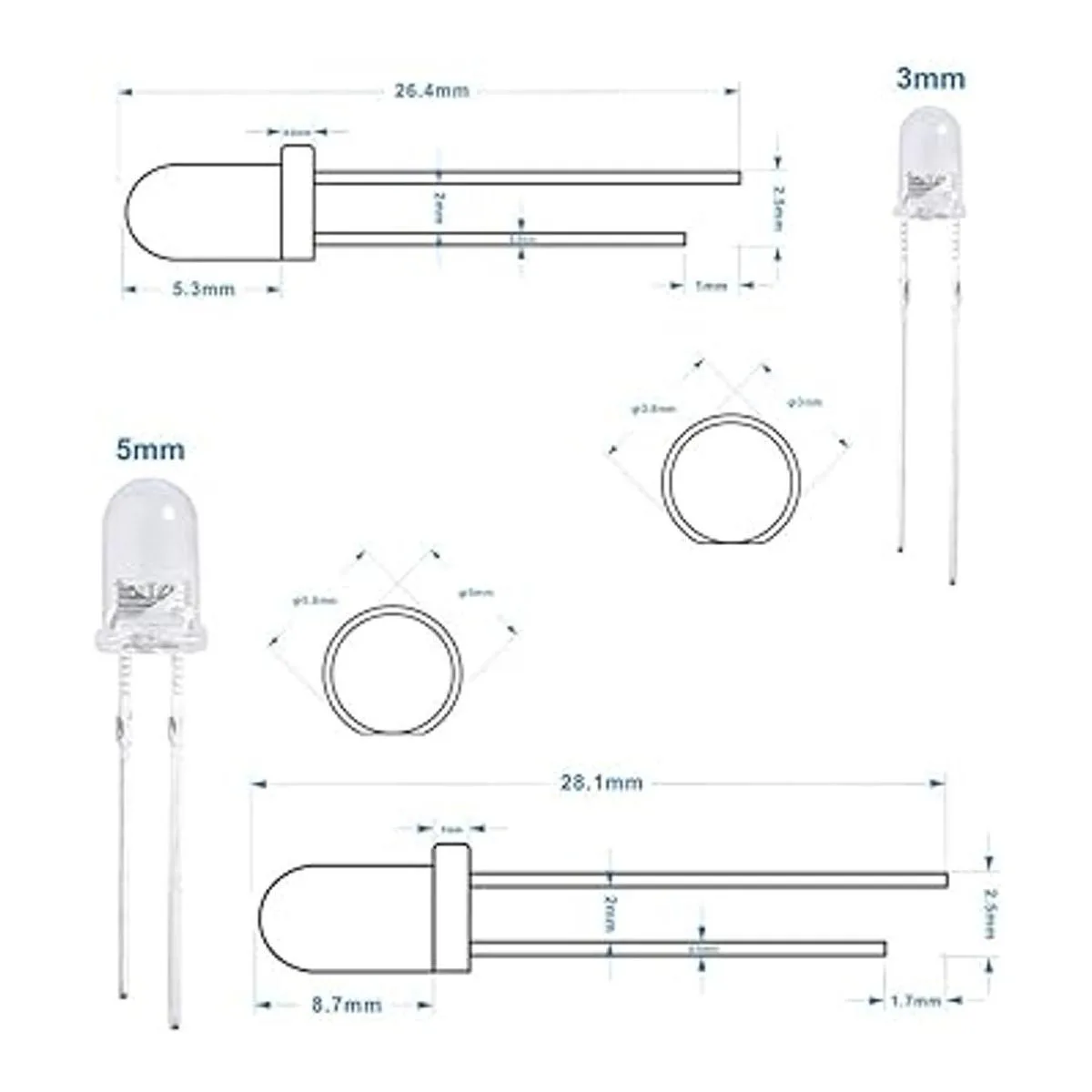 Kit de LED redondo difuso y transparente de 0.118 in y 0.197 in