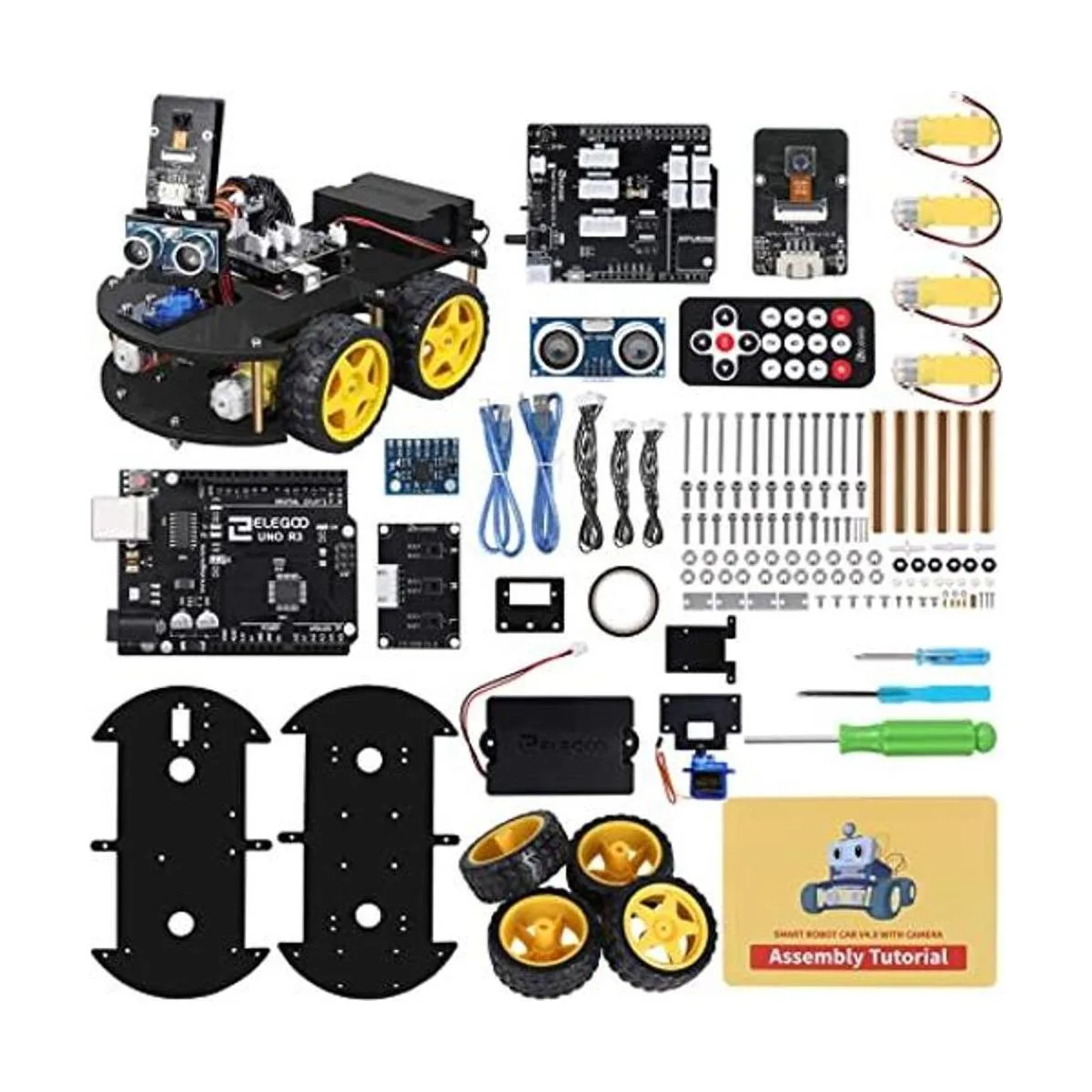 ELEGOO Smart Robot Car: An educational STEM kit beginners kids to get handson experience about programming, electronics assembling and robotics knowledge. It is an integration solution for robotics learning and made for education.