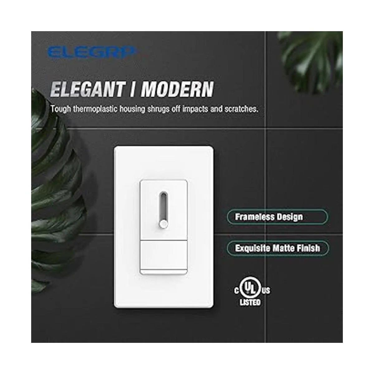 ELEGRP Interruptor regulador deslizante para bombillas LED regulables, CFL e incandescentes, de un solo polo o de 3 vías, control completo con preestablecido, paleta basculante, placa de pared incluida, lista UL 1 paquete, blanco mate